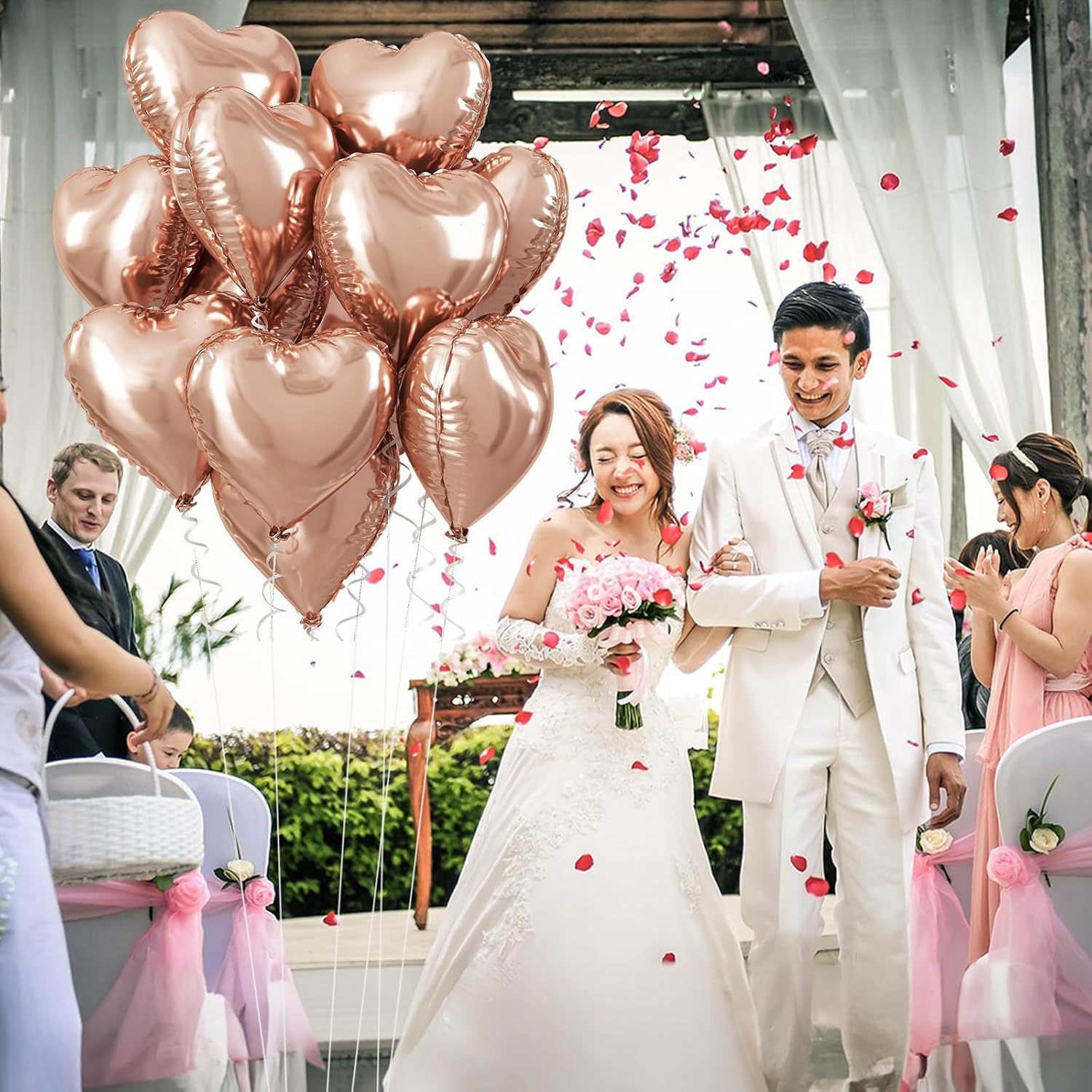 • Rose Gold Heart Balloons: 10pcs 18 inch rose gold heart foil balloons.
