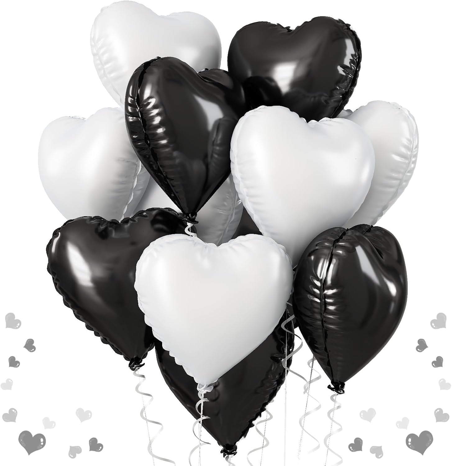 • Black White Heart Balloons: 10pcs 18 inch heart foil balloons, Includes 5pcs 18inch white heart foil balloons, 5pcs 18inch black heart foil balloons and 1pc ribbons.