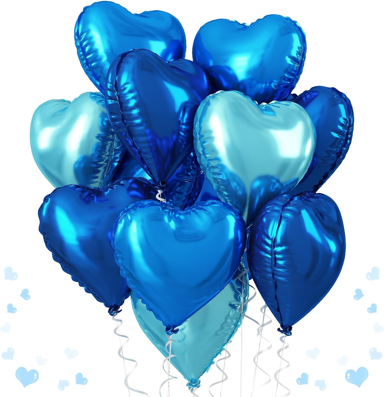 • Blue Mixed Heart Balloons: 9pcs 18 inch heart foil balloons, Includes 3pcs 18inch drak blue heart foil balloons, 3pcs 18inch light blue heart foil balloons, 3pcs 18inch royal blue heart foil balloons and 1pc ribbons.