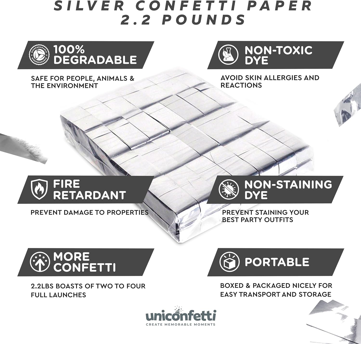 • πŸŽ‰ SILVER CONFETTI PAPER - Contains vibrant silver confetti paper that can be used with our Confetti Launcher Machine with Remote Control.