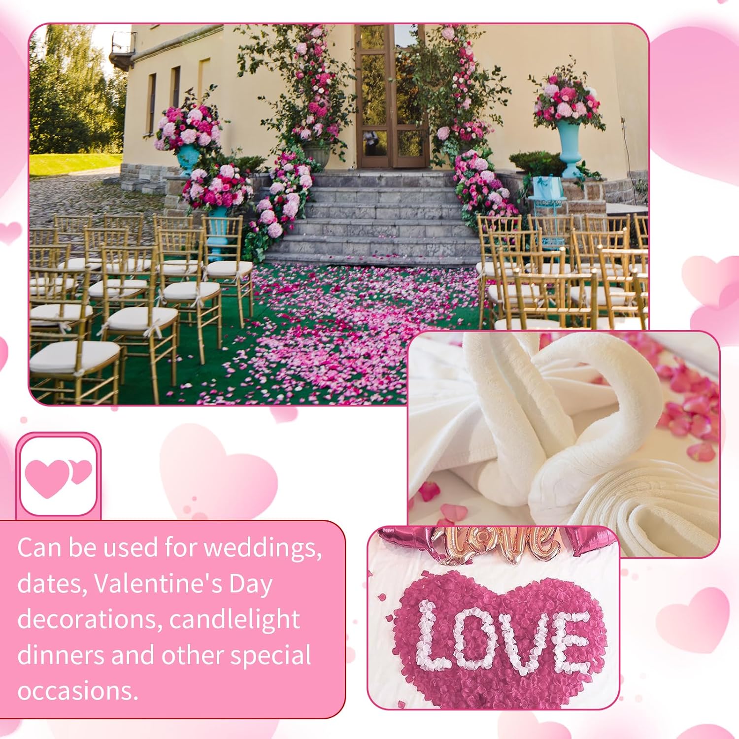 • 🌹【Create a Romantic Atmosphere】🌹These perfect artificial petals are ideal for scattering on occasions like Valentine's Day, weddings, romantic dates, proposals, table decorations, aisle runner scatters, and any event where you want to emphasize romantic love. They are the go-to choice for rose petal decorations at parties, wedding anniversary celebrations, romantic nights, and various banquet occasions.