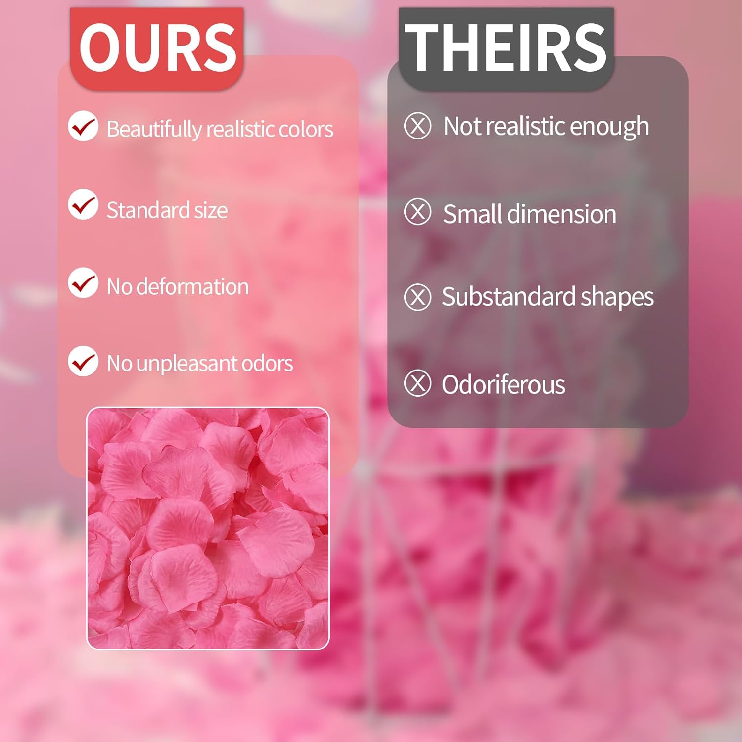 • 🌹【Create a Romantic Atmosphere】🌹These perfect artificial petals are ideal for scattering on occasions like Valentine's Day, weddings, romantic dates, proposals, table decorations, aisle runner scatters, and any event where you want to emphasize romantic love. They are the go-to choice for rose petal decorations at parties, wedding anniversary celebrations, romantic nights, and various banquet occasions.