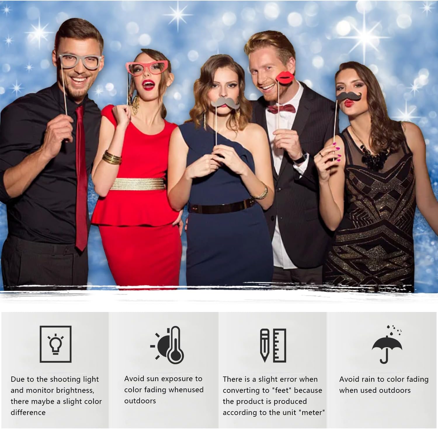 YongFoto Silver Blue Glitter Backdrop 12x10ft Silver Light Spots Blue Sequin Bokeh Photography Background Birthday Bridal Shower Wedding Photography Background Party Banner Portraits Photoshoot Props