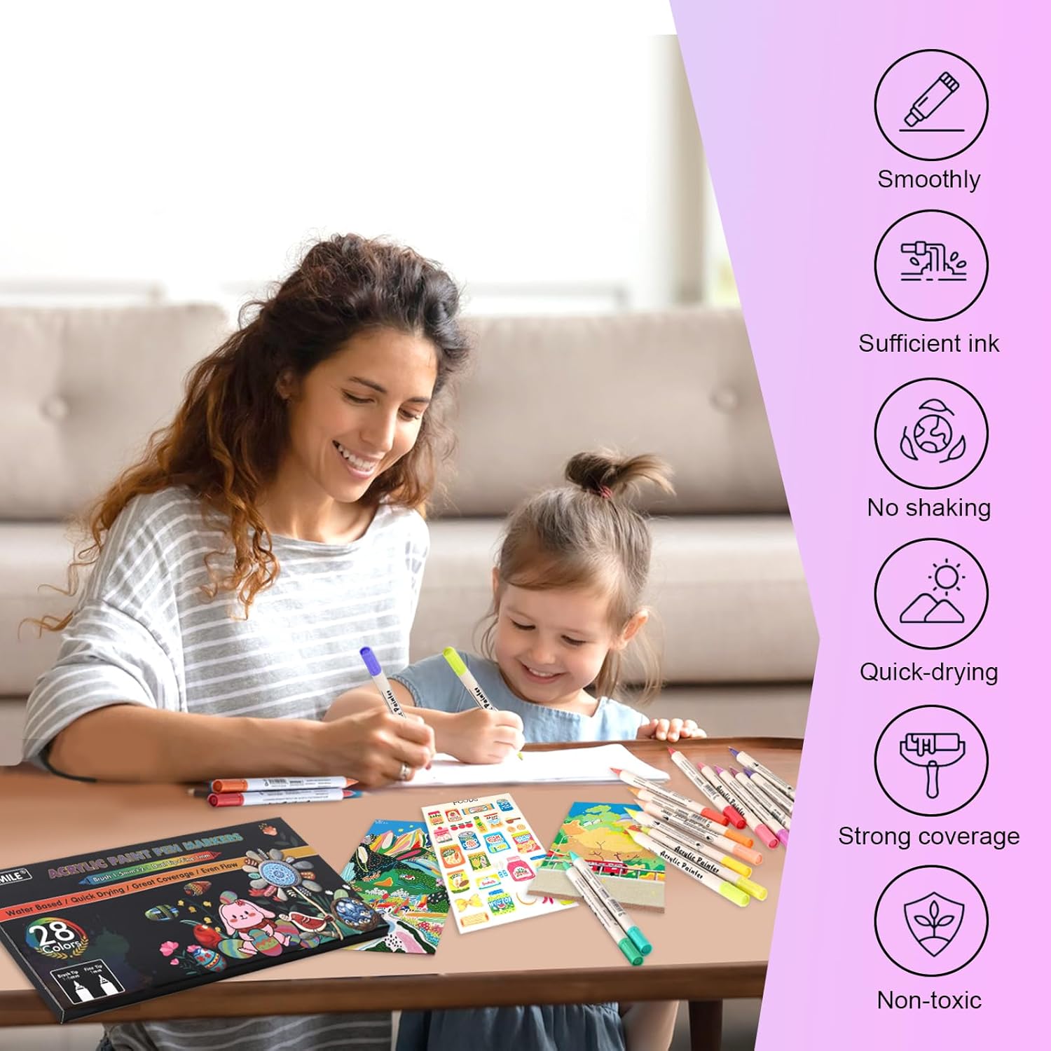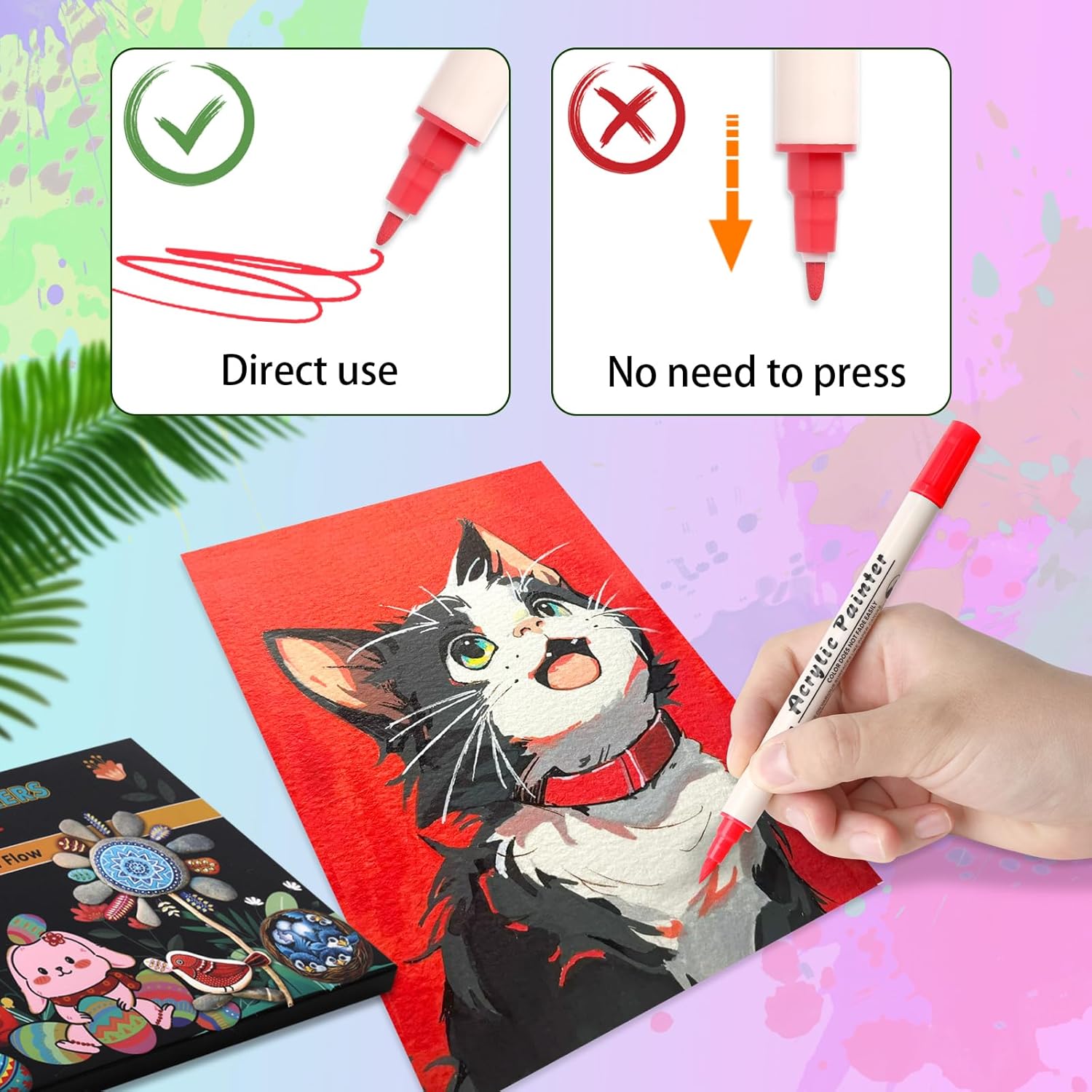 • 【Convenient to Use】Our paint pens with new design.You don't need to shake or press when using it,open the pen cap and you can start your creative journey.our acrylic pens are cotton nibs that it can be used directly.Warm tip:To ensure the smoothness of the ink, please place the pen flat and cover it with a pen cap after use.