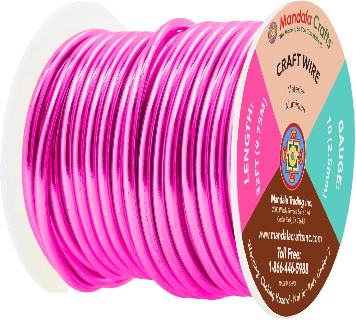 Mandala Crafts 10 Gauge Anodized Aluminum Craft Wire for Jewelry Making - 32 FT Colored Flexible Hot Pink Wire - Bendable for Bonsai Armature Crafting Sculpting