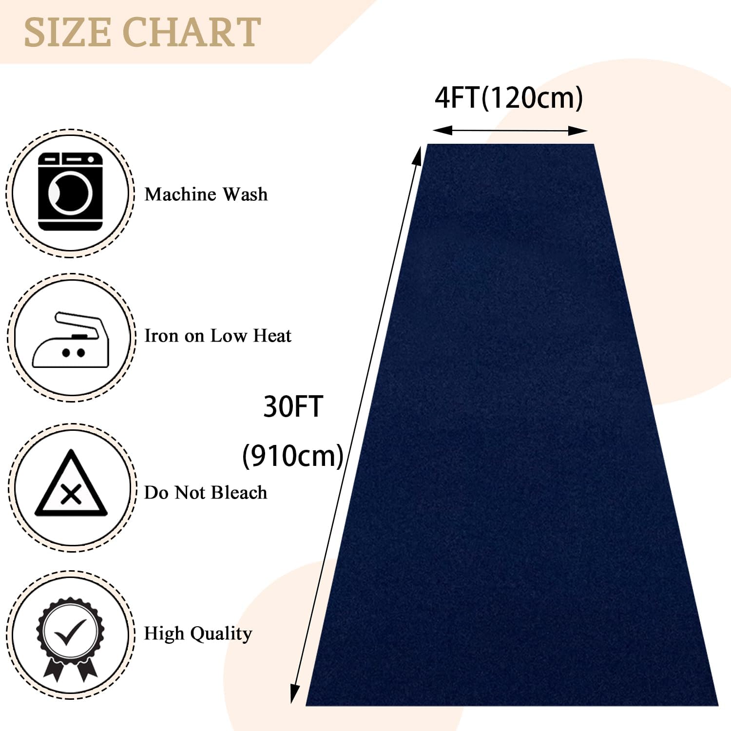 • ❤Size Guide - Navy Blue Aisle Runner: You will receive 4ft wide by 30ft long navy blue velvet aisle runner rug and 1 pack carpet tapes. Wedding aisle runway for ceremony add a perfect finishing touch to your ceremony venue, becoming a memorable keepsake to be cherish.