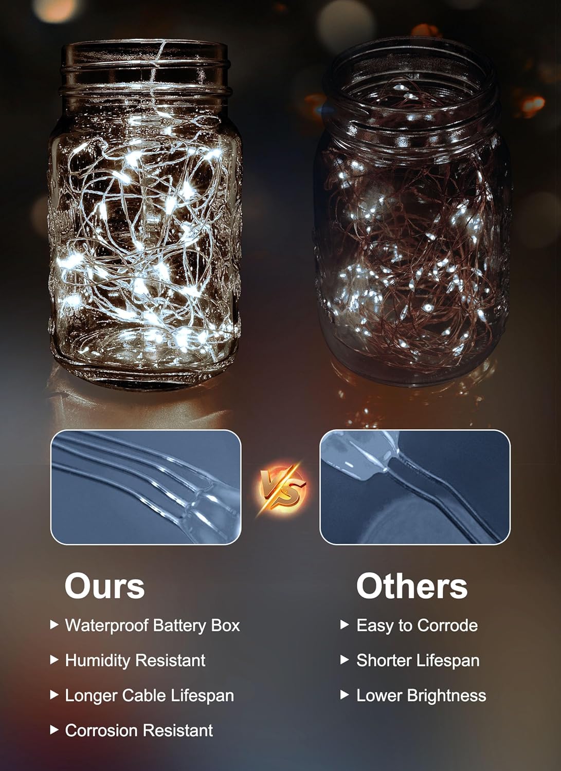 • Portable & Waterproof Design – These battery-operated fairy lights are perfect for areas without outlets or during power outages. Featuring an IP44 waterproof battery box and durable LED bulbs, they shine brightly even in wet weather—ideal for Christmas, weddings, and outdoor décor