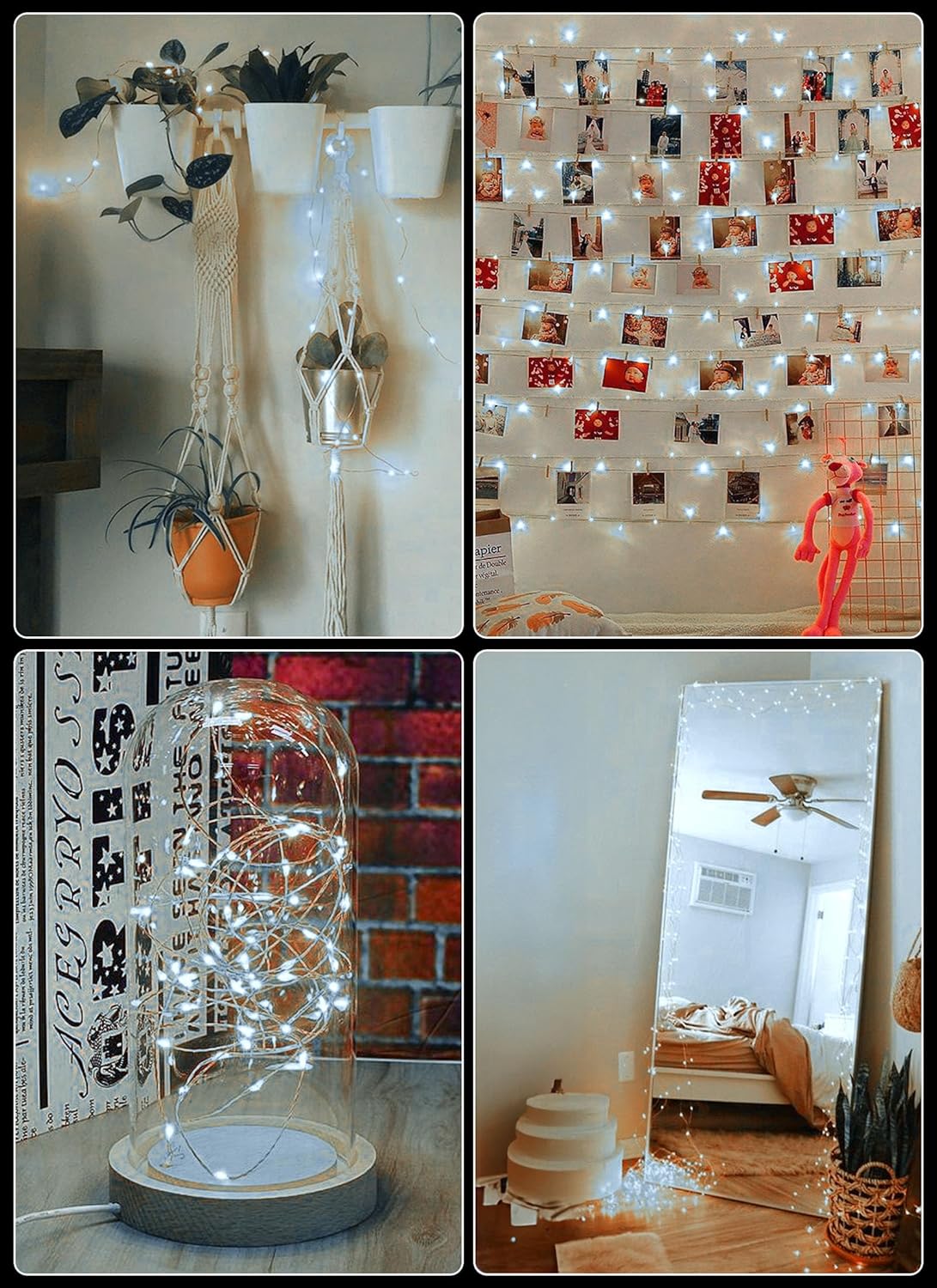 • Brighter & Adjustable Lighting – Compared to standard fairy lights, these upgraded string lights use brighter white LEDs and stronger silver wire. With 10 dimmable settings, you can create a cozy glow or a festive sparkle—customized to any occasion