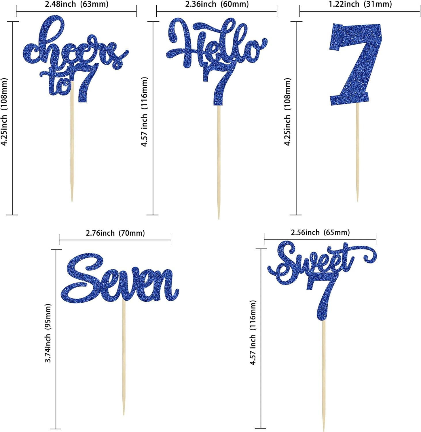 30Pcs 7th Birthday Cupcake Toppers Glitter Seven Happy 7 Cupcake Picks Cheers to 7 Years Old Cake Decorations for 7th Birthday Party Supplies Deep Blue