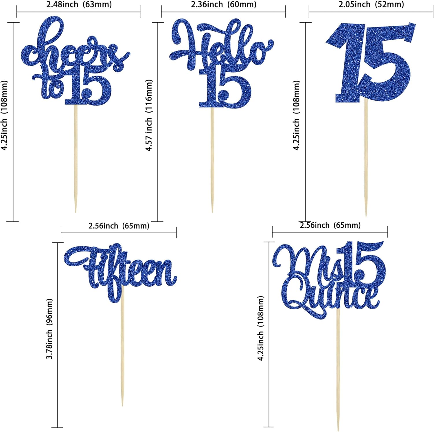 • -Package included: 24Pcs Happy 15th Birthday Cupcake Toppers. Comes with assembled, so you can insert into your cake directly, which make your cake more interesting.