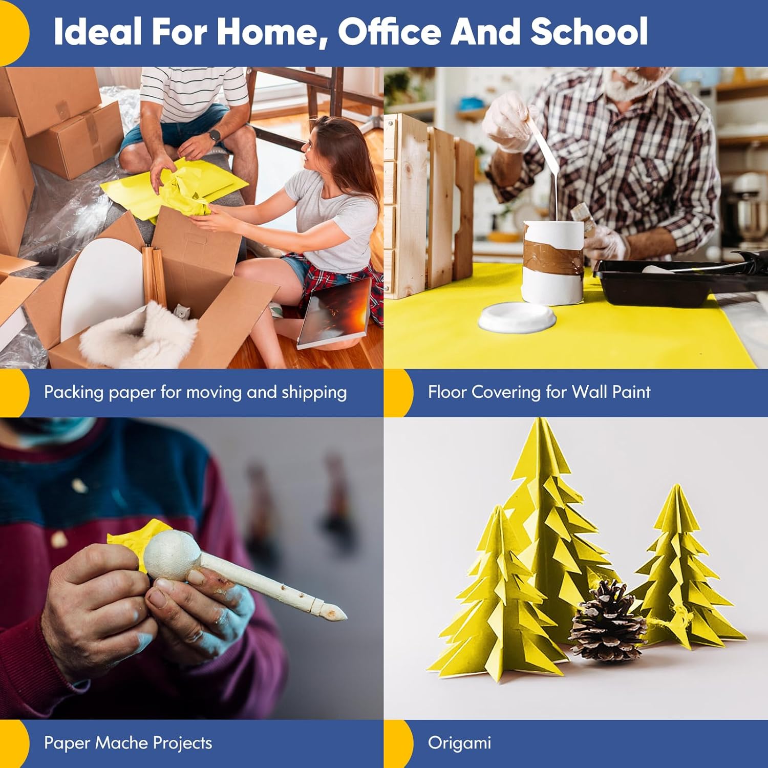 • Thick and Durable Paper. Made with industrial grade heavy duty paper, Vanhench yellow wrapping paper roll is sturdy and durable, does not rip or tear easily. The kraft paper roll can be used as parcel packing paper, great protection for shipping, packing and moving, better alternative to newsprint paper sheets and construction paper for arts and crafts paper. Meets your needs for everyday use.