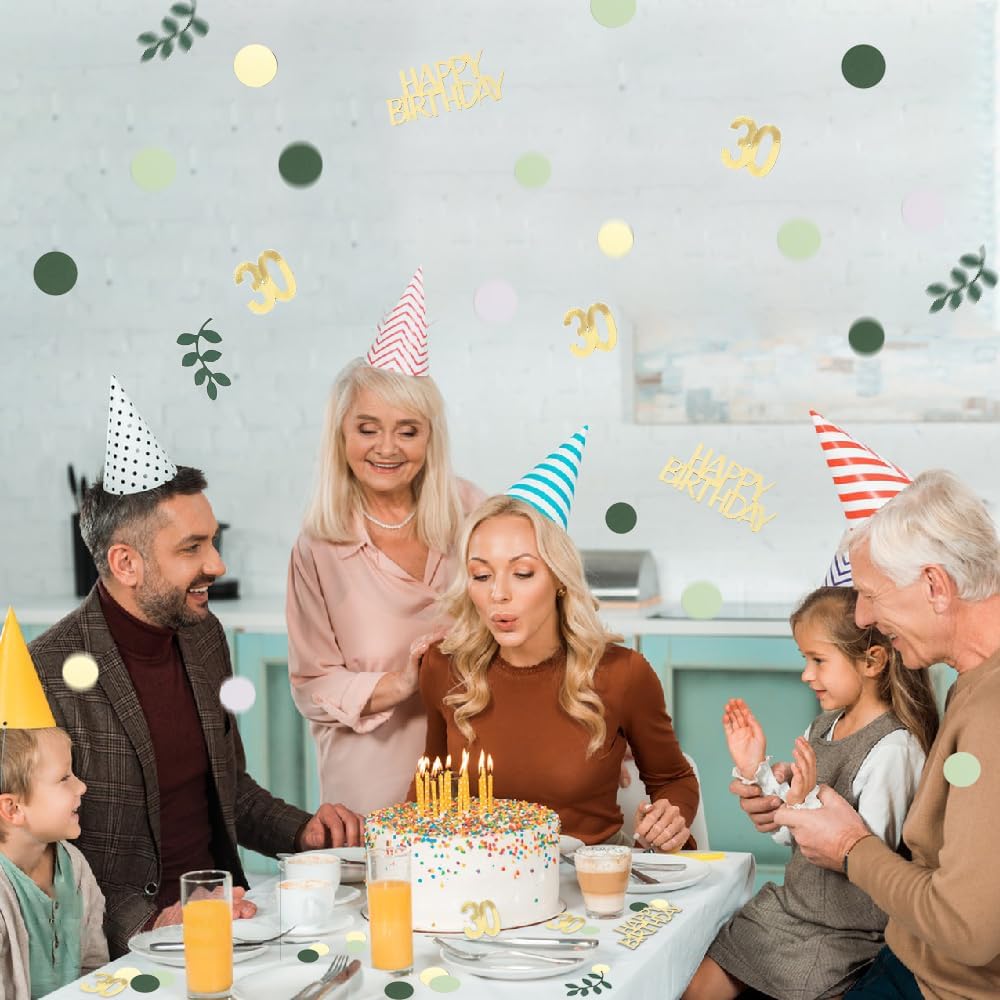 Sage Green 30th Happy Birthday Confetti, Table Decorations Green Gold Foil Scatter Cake Confetti for 30th Birthday Her Him Party Decor 230 Pcs