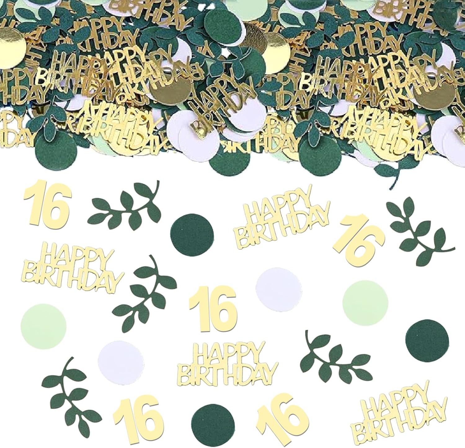 Sage Green 16th Happy Birthday Confetti, 16th Birthday Table Decorations Scatter Green Gold Foil Cake Confetti Decorations for 16 Bday Girls Boys Party Decor 230 Pcs