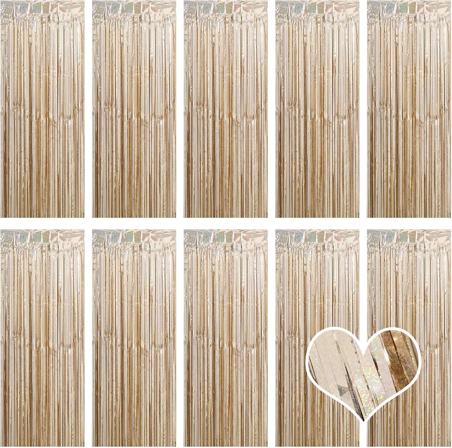 10 Pack Champagne Gold Backdrop Curtain 3.2ft x 8.2ft Metallic Tinsel Foil Fringe Curtains Photo Booth Background for Birthday Party Decoration Engagement Wedding Christmas Decor (Champagne Gold)