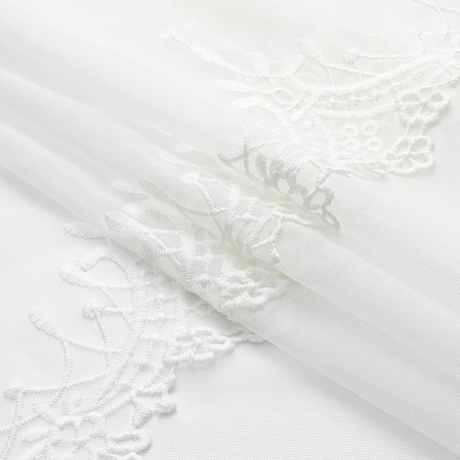 VISIONTEX White Sheer Voile Curtains, Decorative White Embossed European Rod Pocket Window Drapes for Home Kitchen, Living Room and Bedroom 54 x 63 Inch, Set of 2 Curtain Panels
