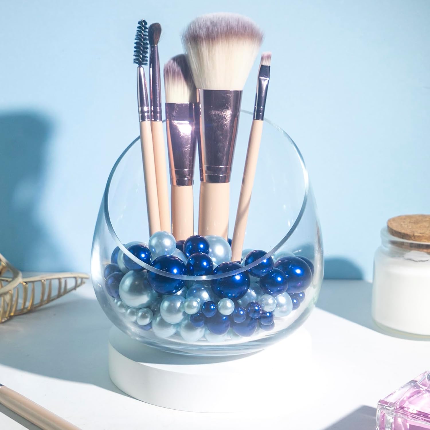 150Pcs Navy&Light Blue Polished No Hole Faux Pearl Beads for Vase Filling Decorations, Plastic Pearls Vase Fillers, Table Scatters, Wedding Centerpiece, Home Decor, 8/14/20 mm