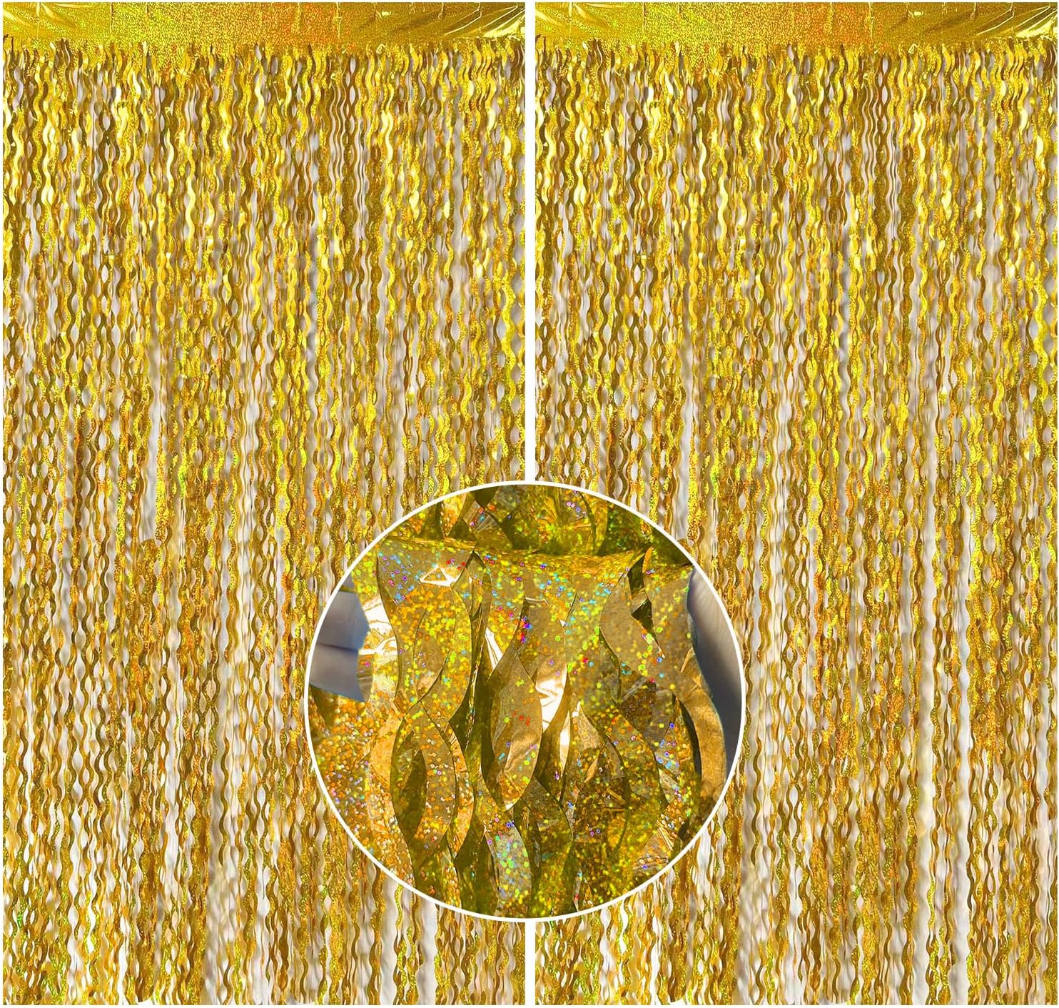 • Gold Backdrop :2 Pack, each curtains size is 3.28 ft x 6.56 ft, enough length foil fringe backdrops are perfect for the door, wall and table,feel free to cut to any length you want.