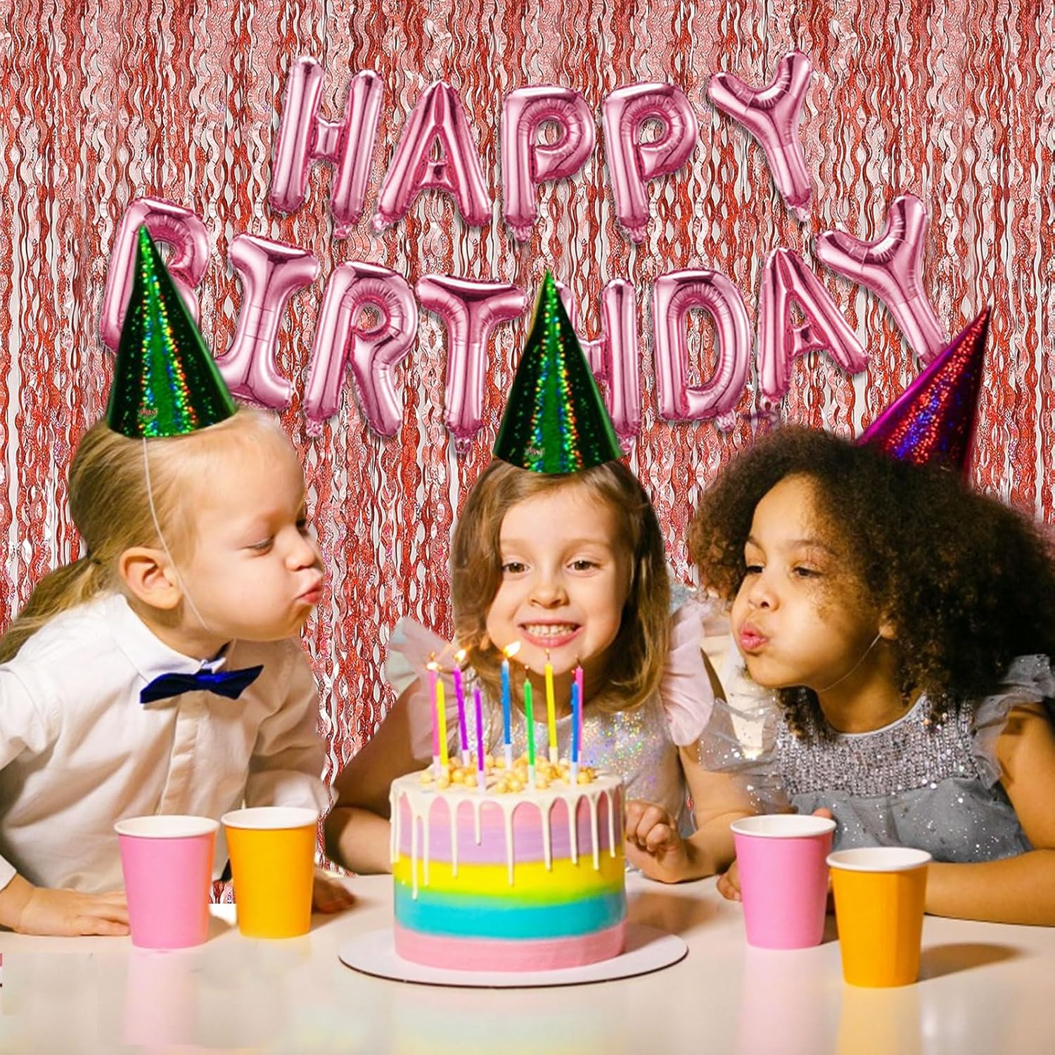 • Rose Gold Birthday Decorations:5 Pack, each curtains size is 3.28 ft x 6.56 ft, enough length foil fringe backdrops are perfect for the door, wall and table,feel free to cut to any length you want.