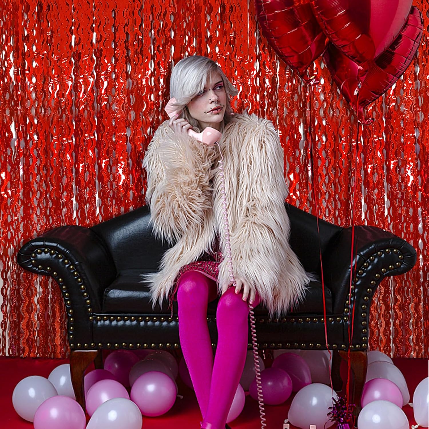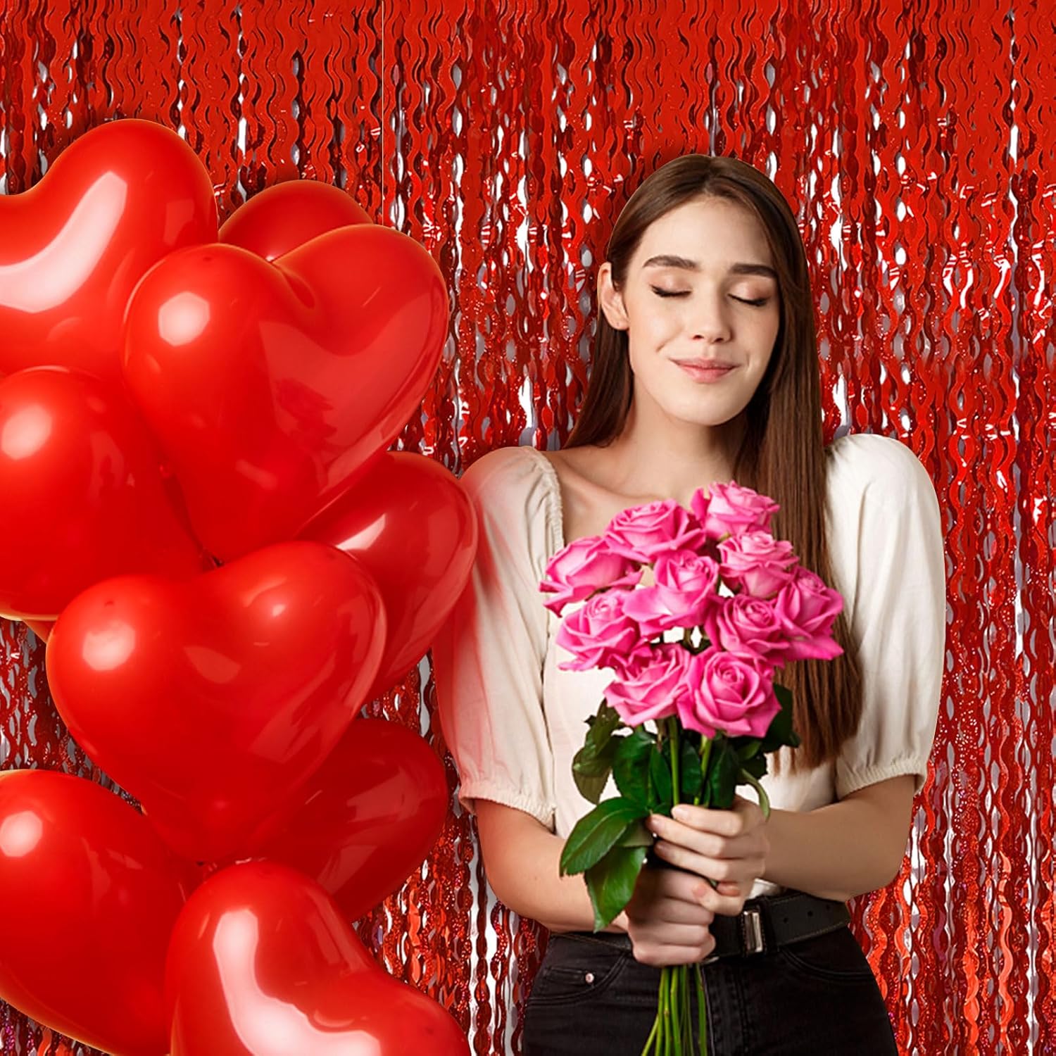 • Valentines Day Backdrop:2Pack, each curtains size is 3.28 ft x 6.56 ft, enough length foil fringe backdrops are perfect for the door, wall and table,feel free to cut to any length you want.