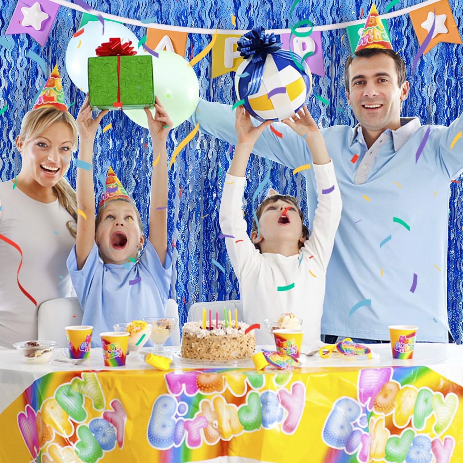 • Blue Birthday Decorations:5 Pack, each curtains size is 3.28 ft x 6.56 ft, enough length foil fringe backdrops are perfect for the door, wall and table,feel free to cut to any length you want.
