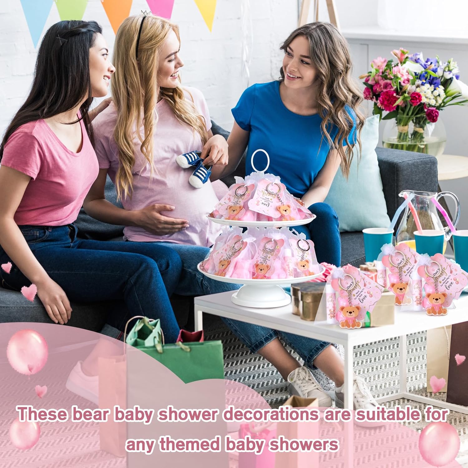 288 Baby Shower Favors Baby Shower Gifts Bulk Lip Balms Soaps Keychains Organza Bags Guest Appreciation Gift with Thank You Tags and Cards for Boys Girls Guest Gift(Pink,Bear)
