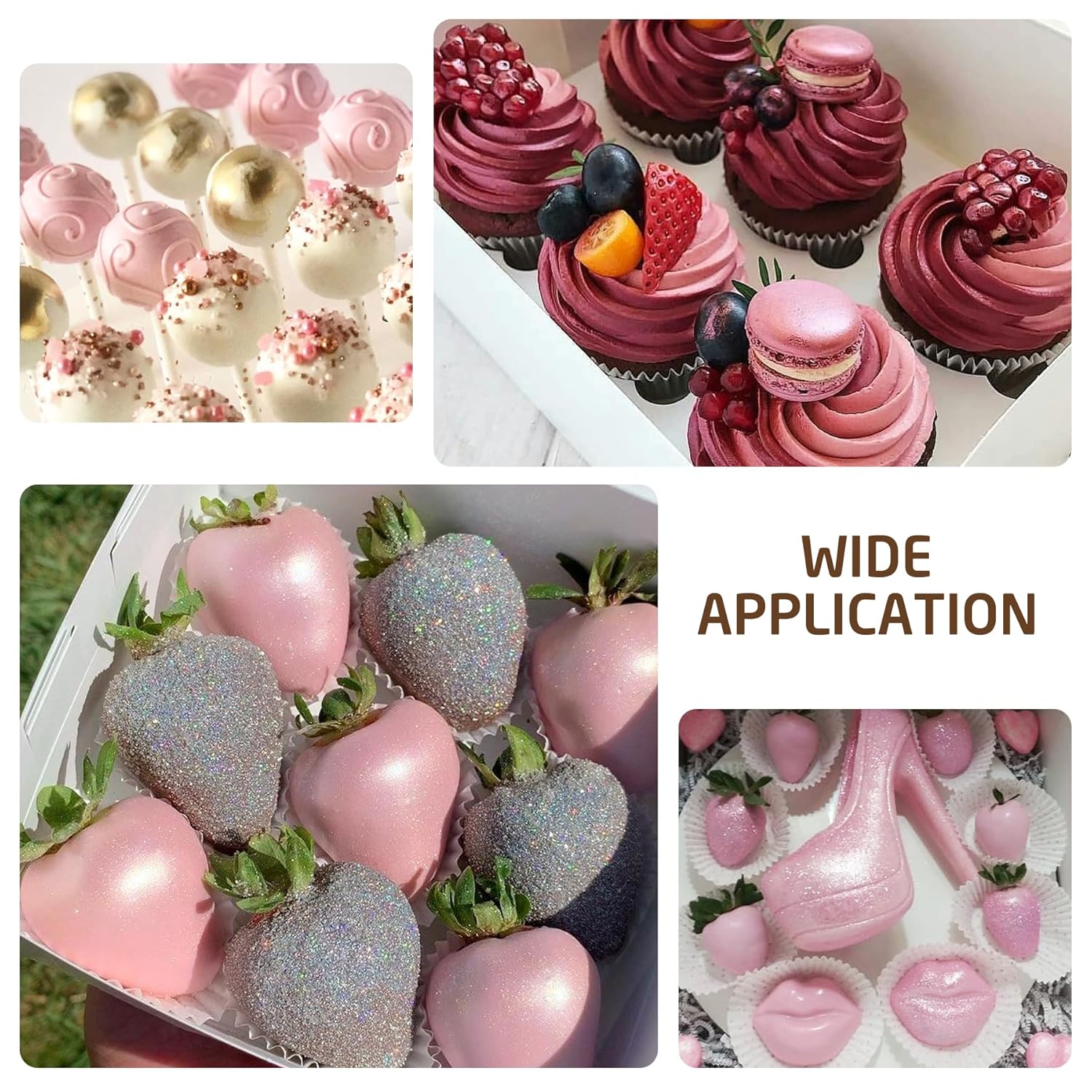• METALLIC EDIBLE GLITTER PAINT - Specially crafted for food and baking decoration to get a metallic finish or add a gold-plated effect. All colors are brilliant and amazing. This fine texture edible cake paint can provide a high luster glitter effect to your cakes, chocolates, and candy!
