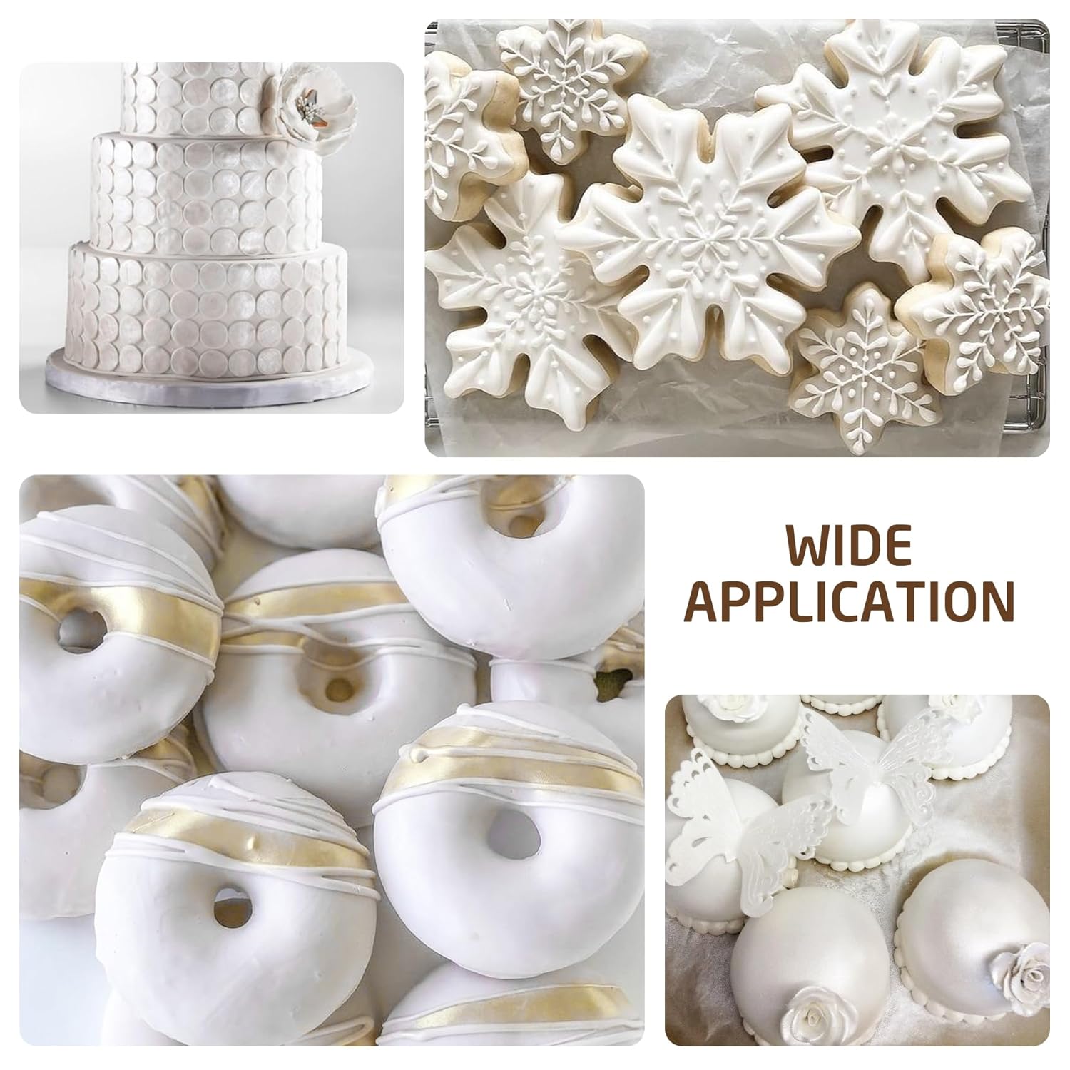 • SAFE & PREMIUM - Crafted with premium food-grade ingredients, this edible shimmer cake paint is not only safe but also free from fat, GMOs, gluten, dairy, and nuts. Remarkably, it is sugar-free and flavorless, allowing you to achieve vibrant metallic effects across a wide range of applications without compromising taste or texture.