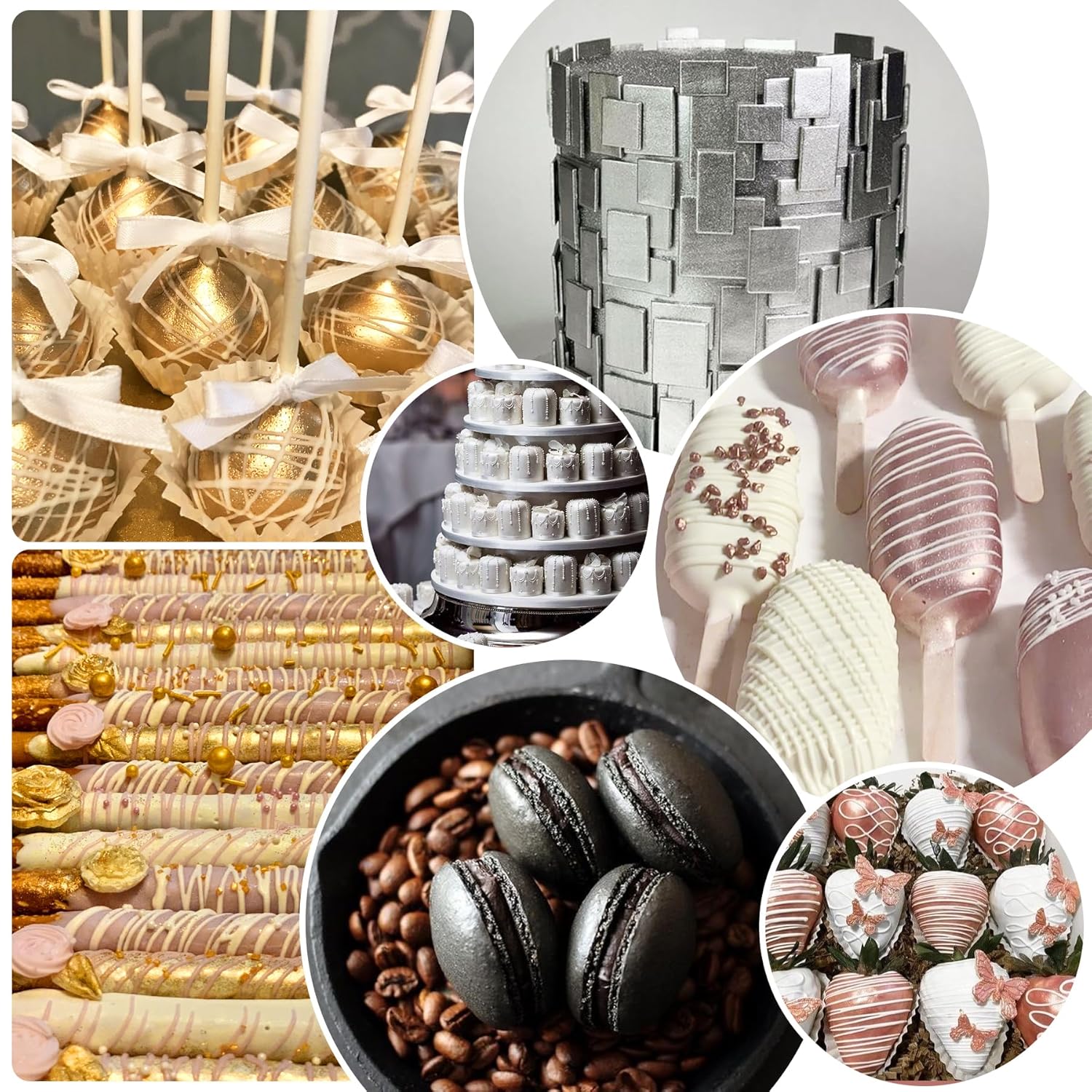 • METALLIC EDIBLE GLITTER PAINT - Specially crafted for food and baking decoration to get a metallic finish or add a gold-plated effect. All colors are brilliant and amazing. This fine texture edible cake paint can provide a high luster glitter effect to your cakes, chocolates, and candy!