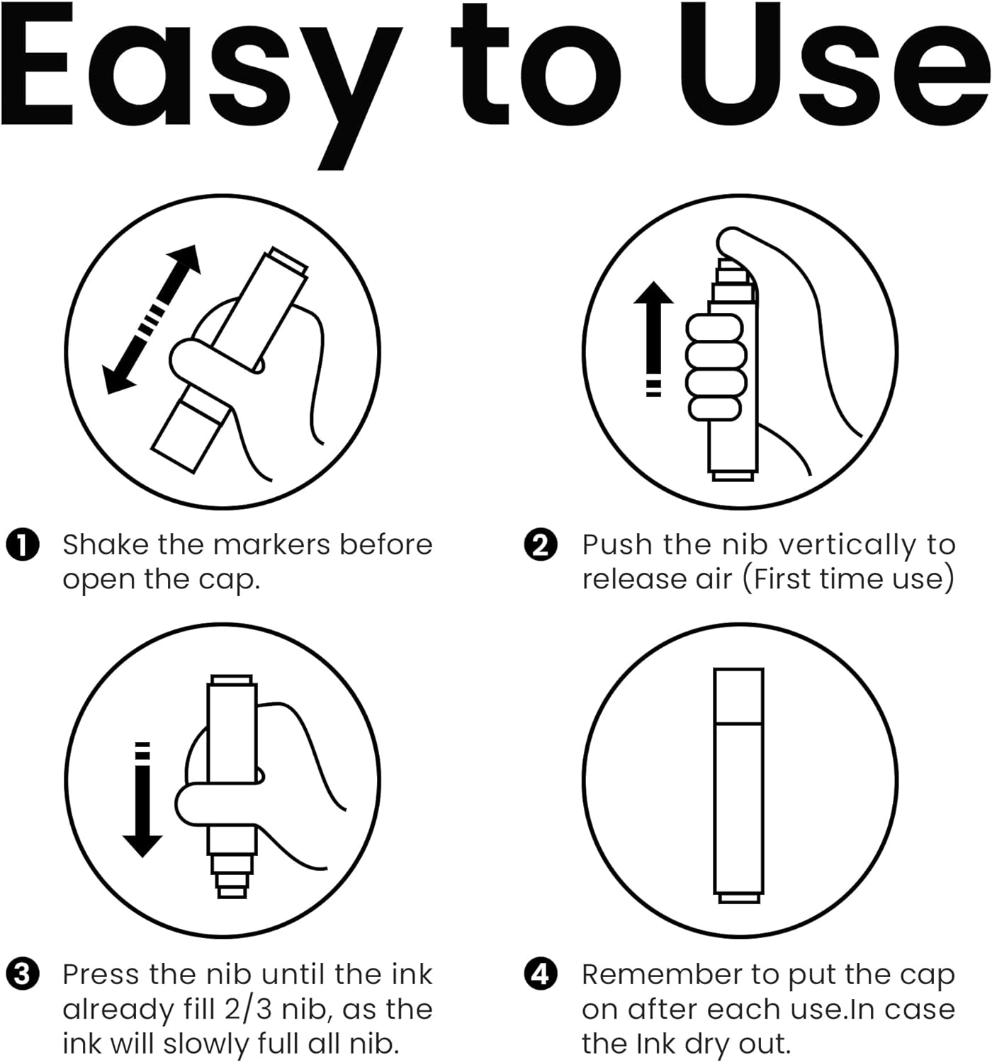 • Jumbo Permanent Markers gold Set: BIGTHUMB jumbo gold markers are made with the highest-quality non-toxic, acid-free, no odor, no-leakage water-based acrylic ink that is waterproof, quick dry, long-lasting, and smooth ink flow. Each fat permanent marker conforms to ASTM d-4236 and EN-71 safety standards