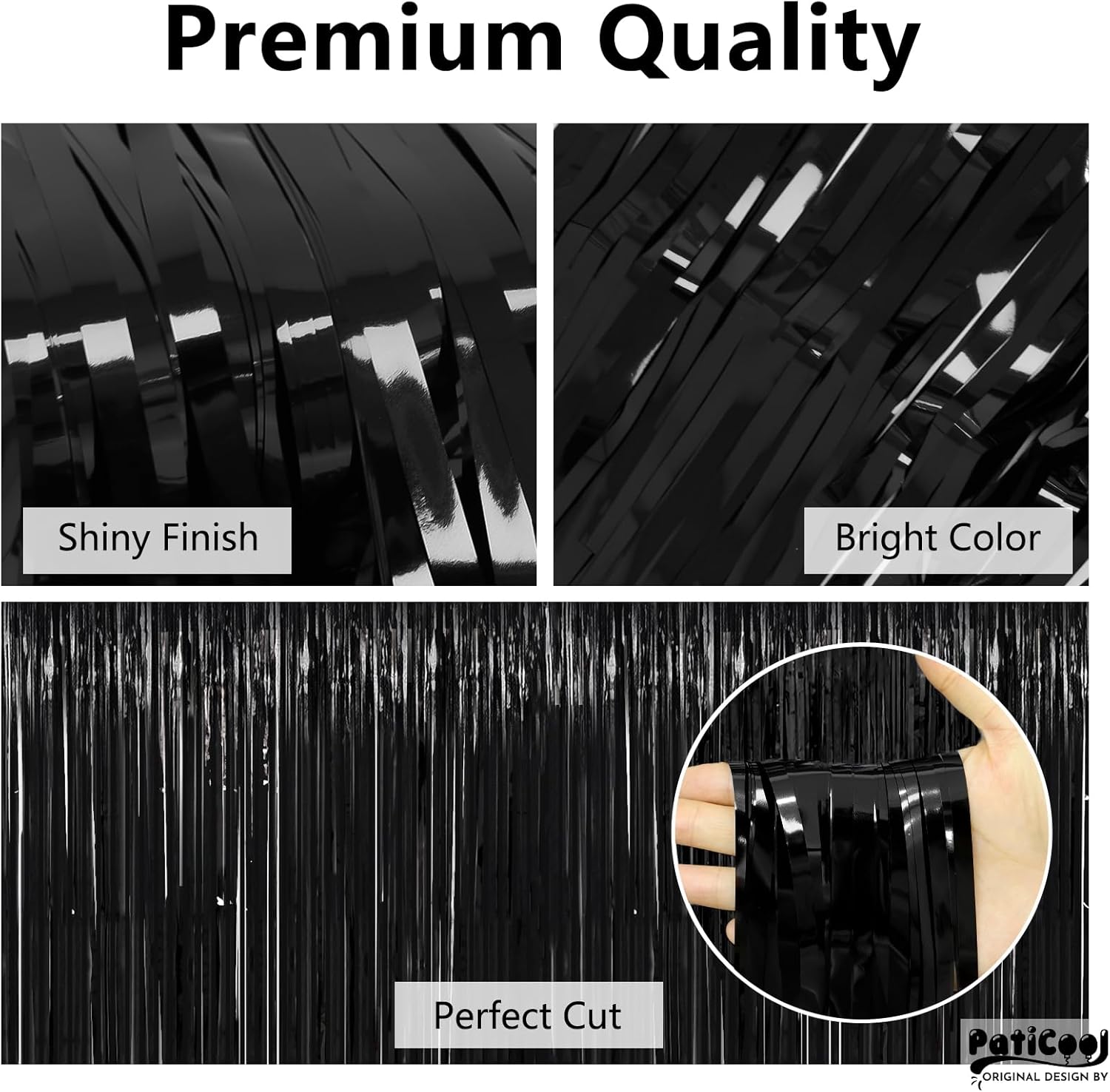 Black Streamers Party Decorations - Thicken 2 Pack 3.2 x 8.2 FT - Black Tinsel Foil Fringe Backdrop Curtains, Photo Booth Props for Birthday, Halloween, Retirement, Bachelor Party Decorations
