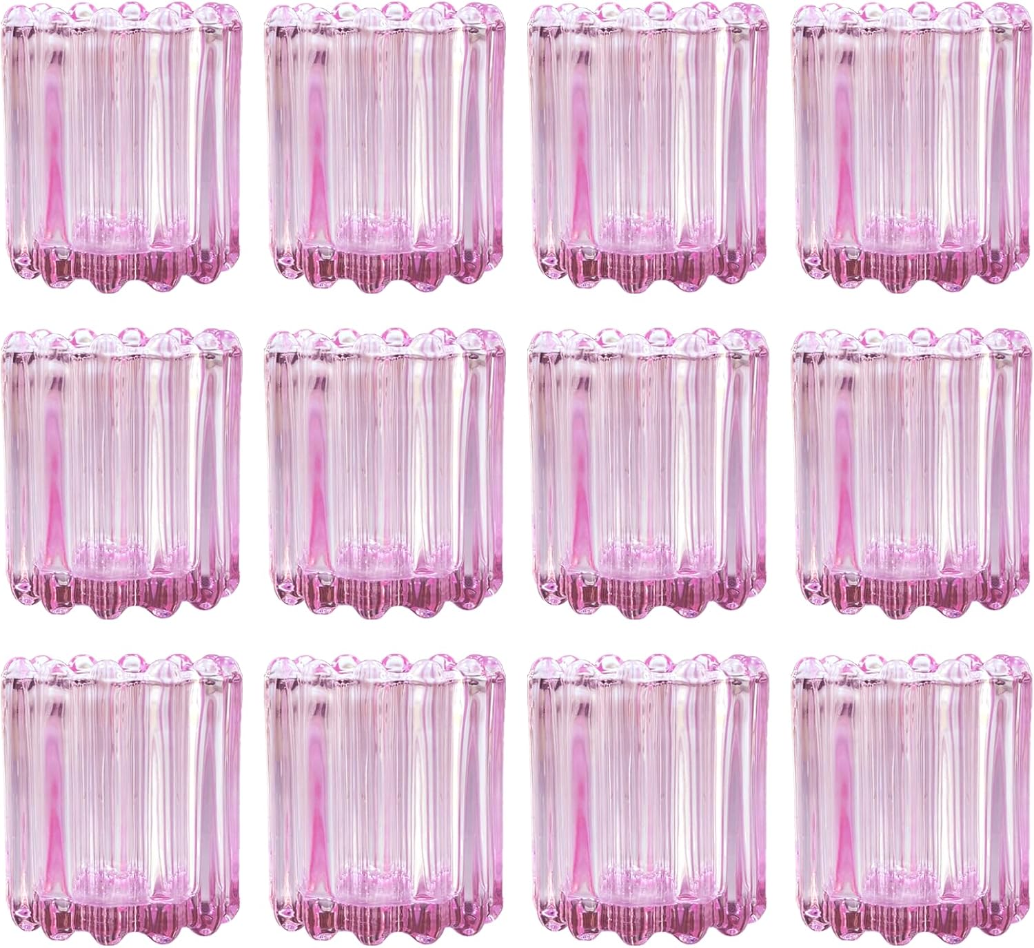 GOLDEAL 12Pcs Pink Glass Votive Candle Holders Tealight Holders Decorative, Tea Candle Holders Bulk,Candlestick for Wedding, Party,Dinner, Home Table Decor.