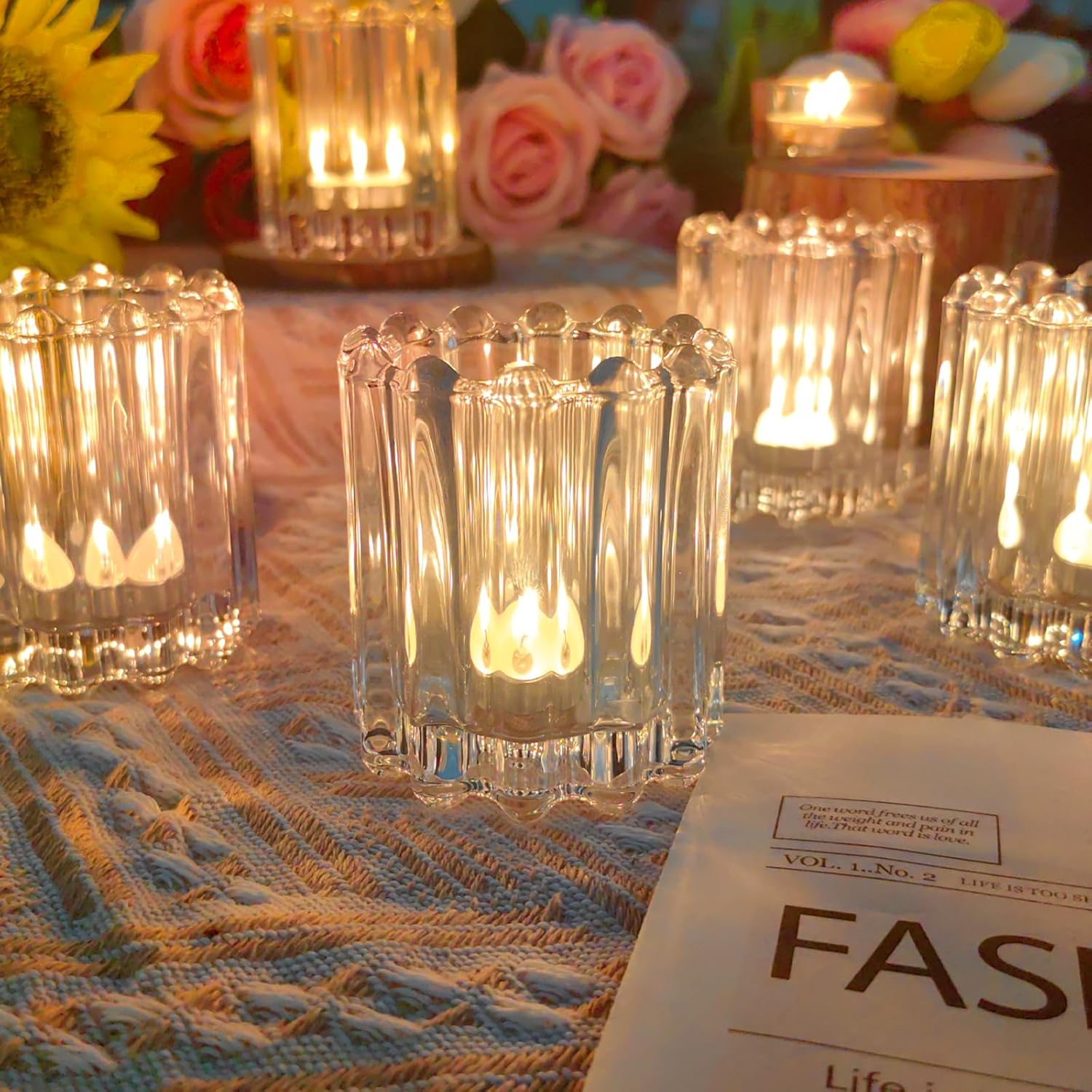 • THICK & HARMLESS GLEAR GLASS: Constructed from thick, lead-free, and harmless glass, these candle holders are incredibly sturdy and resistant to breakage. Their exceptional transparency allows for a stunning diamond-like effect, creating beautiful and soothing illumination throughout the night.