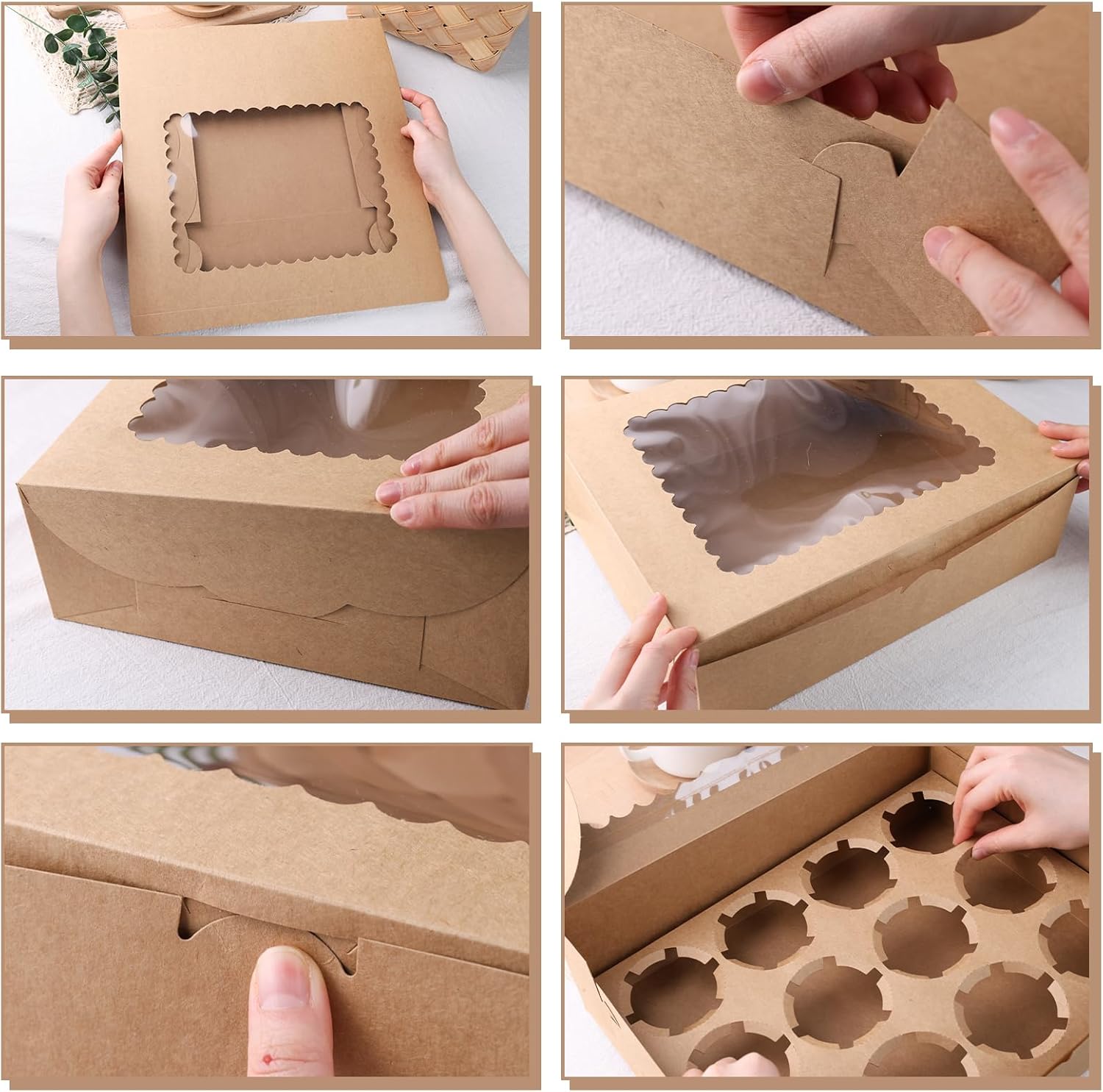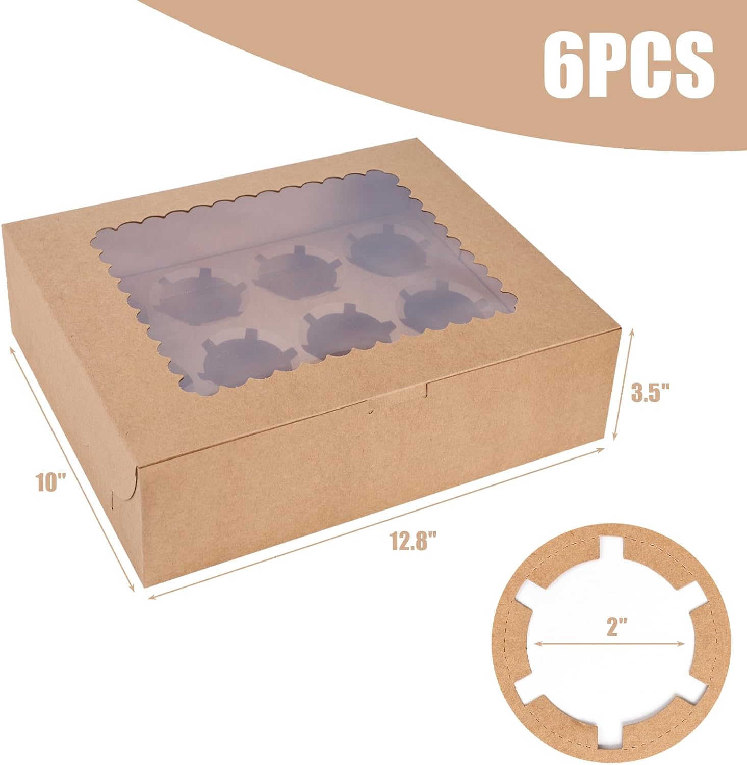 VGOODALL 6PCS Kraft Cupcake Containers, 12 Count with Window Boxes Holding 72 Pastry Box for Birthday Holiday Party Bakery Supplies