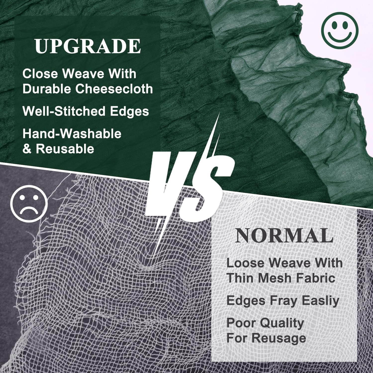 Asee'm 12PCS Table Runner Cheesecloth 10FT Emerald Green Boho Gauze Fabric Rustic Sheer Cheese Cloth Runners for Wedding Bridal Shower Party