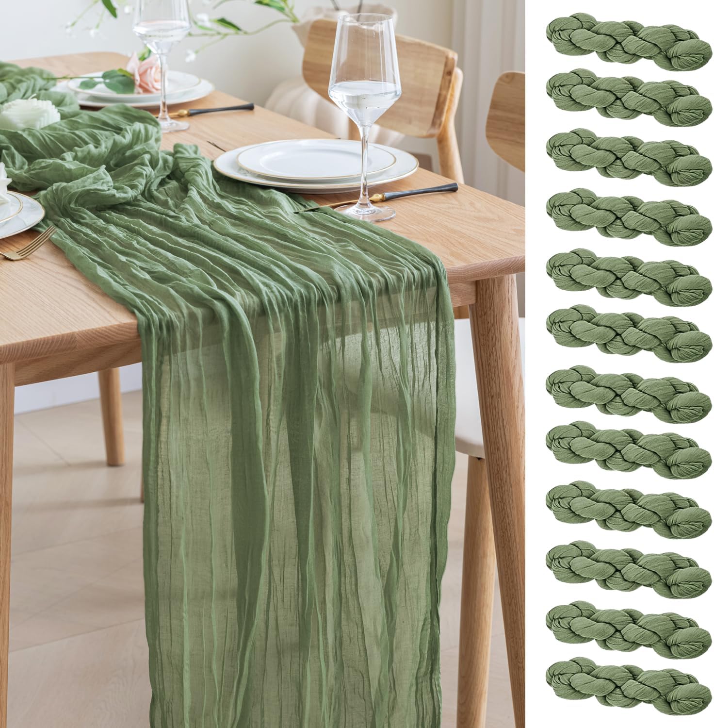 Asee'm 12pcs Cheesecloth Table Runner 120 Inches Sage Green Boho Gauze Cheese Cloth Runner 10FT Rustic Sheer Table Runners for Summer Wedding Baby Shower Holiday Party Decoration