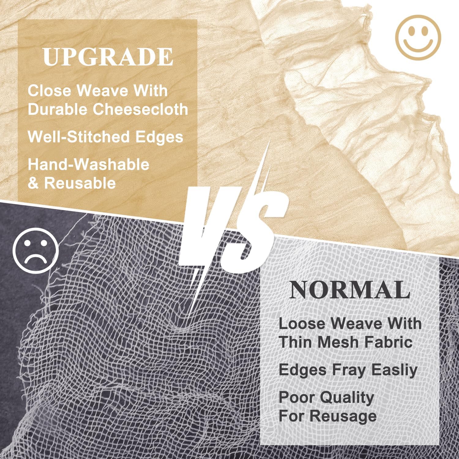 • 【Cheesecloth Table Runner】 Size: 35" W x 120" L. You will get 6 pieces 10FT length cheesecloth table runner. The sheer rustic table runner is long enough to span a large table and drape gracefully across the table. It will gently sway in the wind, adding a romantic atmosphere to your occasion. These eye-catching gauze table runners are ideal for arranging an elegant, stylish tablescape.