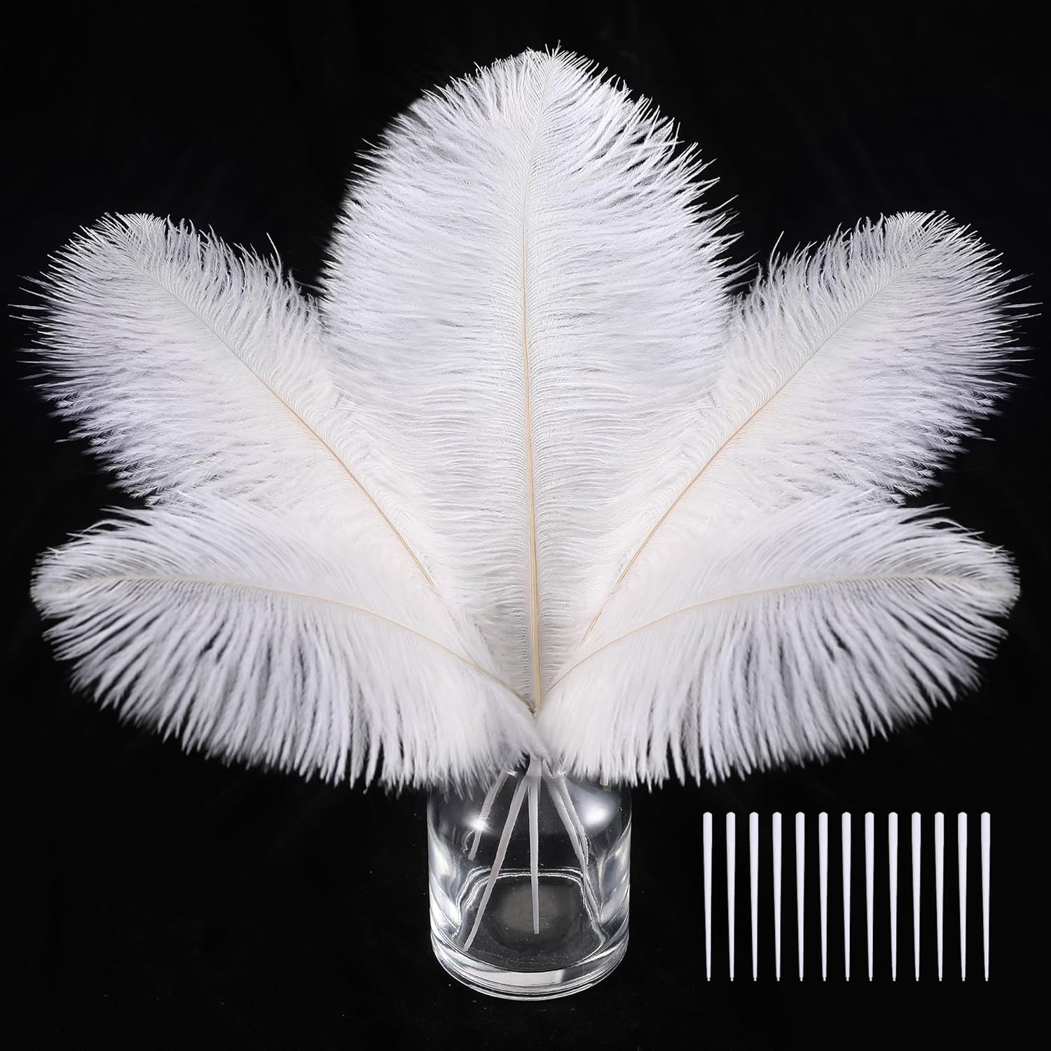 • Creative Ostrich Feathers Set: 30 pcs white ostrich feathers bulk 6-8 inches, 30 pcs small white sticks 3 inches long. Ostrich feathers kit total length can be up to 9-11 inches