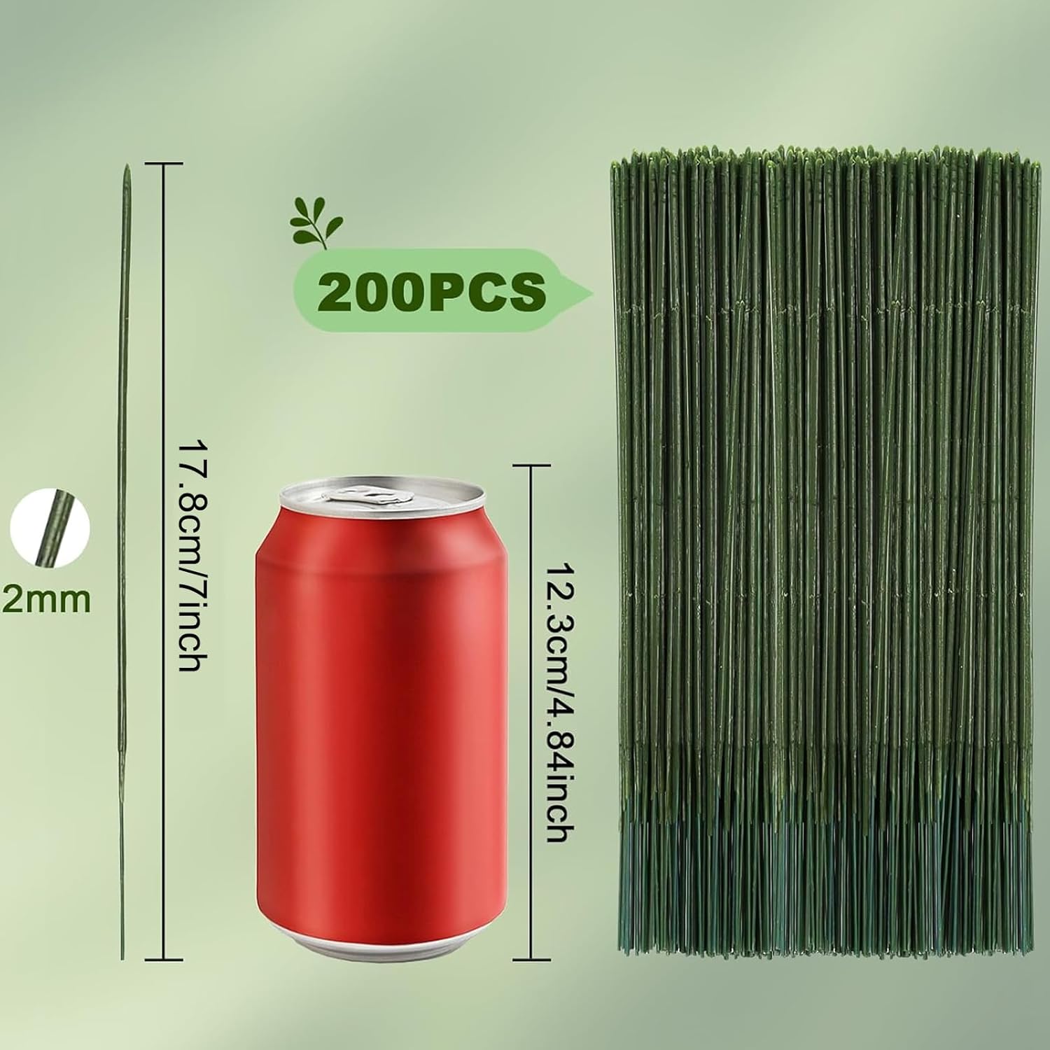 Anjmd 200 Pieces Floral Stem Wire, Artificial Flower Rod, Green Florist Wires for Flower Arrangement Supplies Crafts Bouquet Wreath Making (17CM)