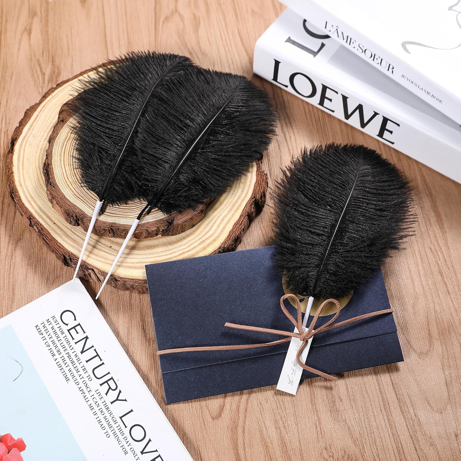 • Creative Ostrich Feathers Set: 30 pcs black ostrich feathers bulk 6-8 inches, 30 pcs small white sticks 3 inches long. Ostrich feathers kit total length can be up to 9-11 inches