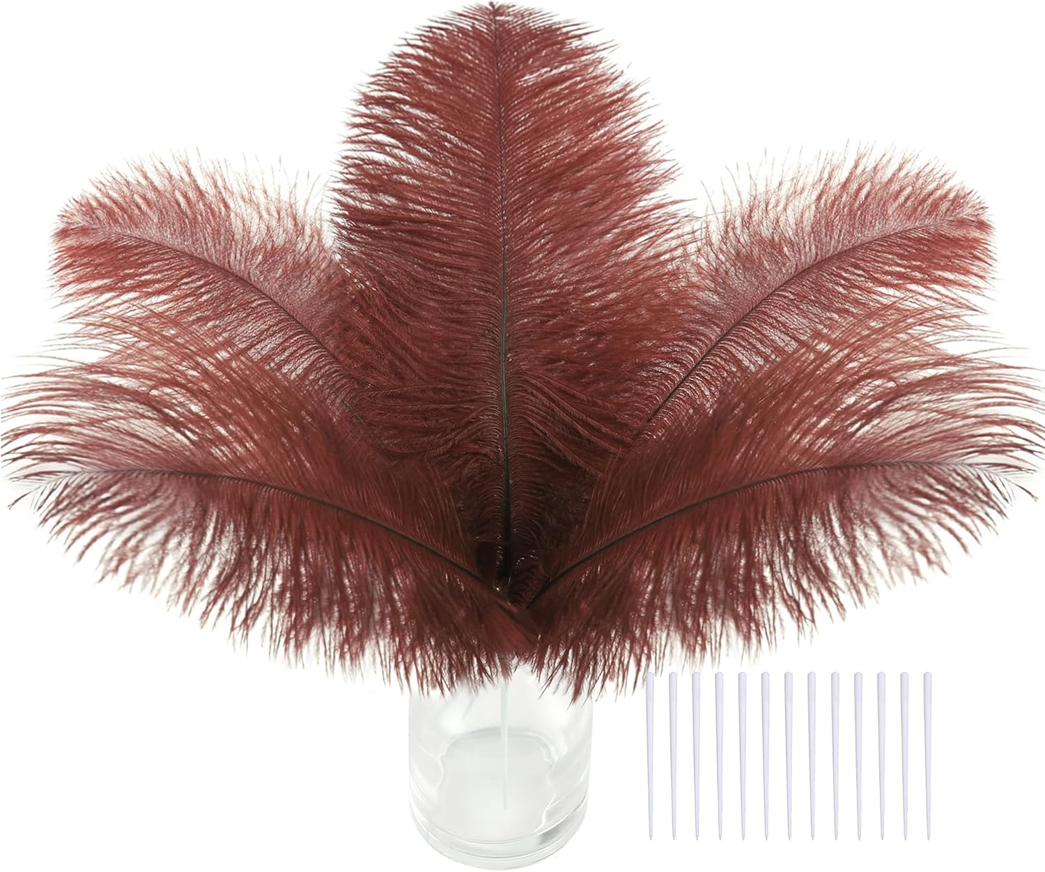 • Creative Ostrich Feathers Set: 30 pcs brown ostrich feathers bulk 6-8 inches, 30 pcs small white sticks 3 inches long. Ostrich feathers kit total length can be up to 9-11 inches
