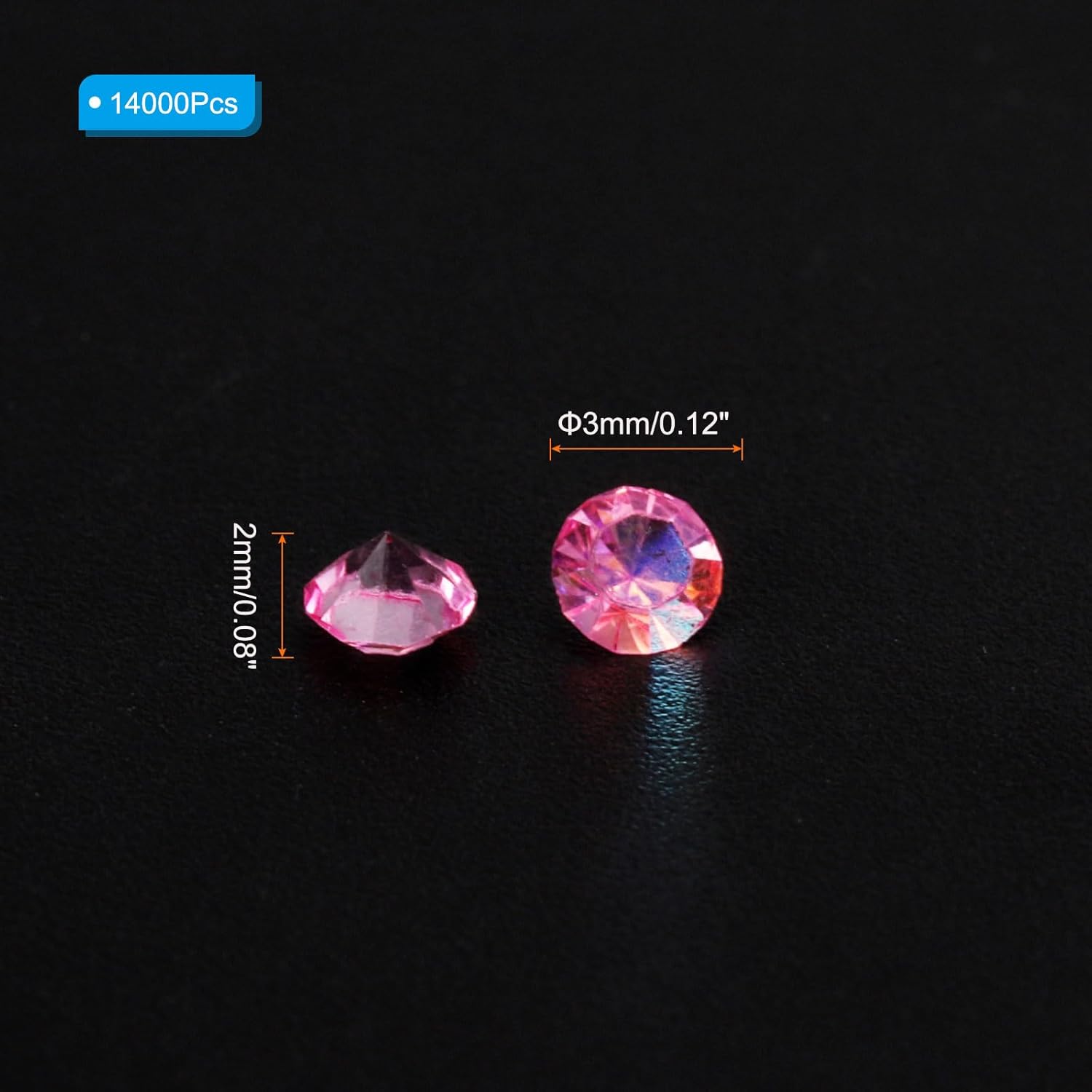 • Color: Red-Violet AB; Material: Acrylic; Size: 3mm x 2mm/ 0.12 x 0.08 inch (Dia.x H); Packing List: 14000Pcs x Acrylic crystal diamonds