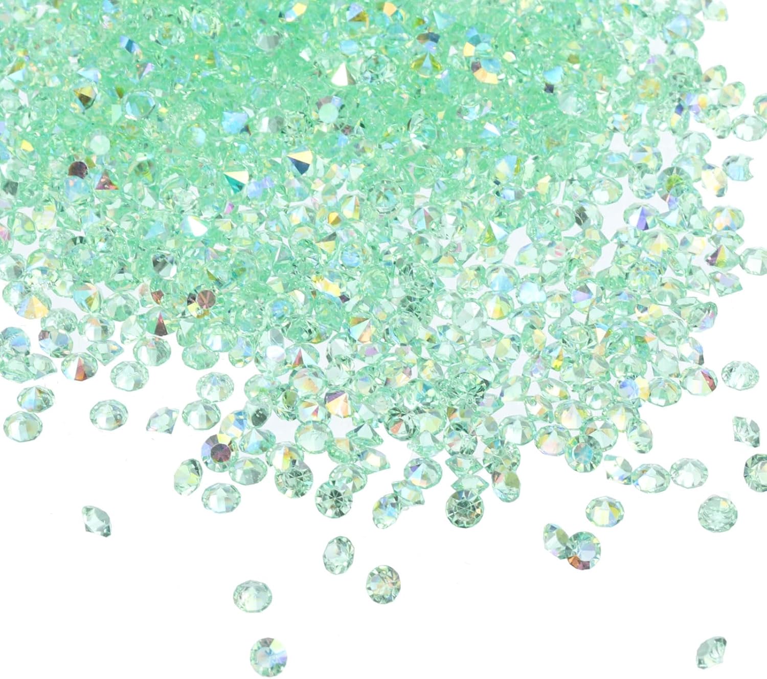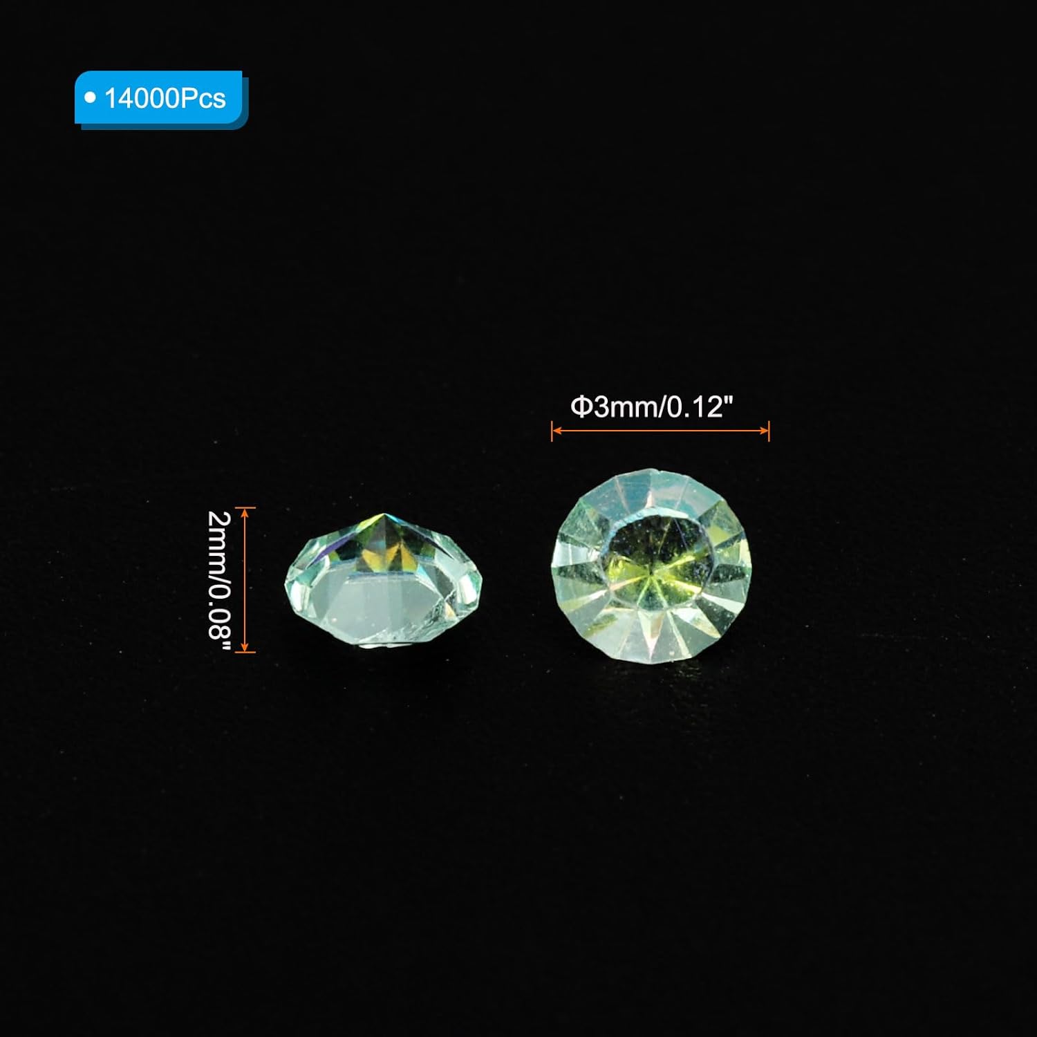 • Color: Lake Blue AB; Material: Acrylic; Size: 3mm x 2mm/ 0.12 x 0.08 inch (Dia.x H); Packing List: 14000Pcs x Acrylic crystal diamonds