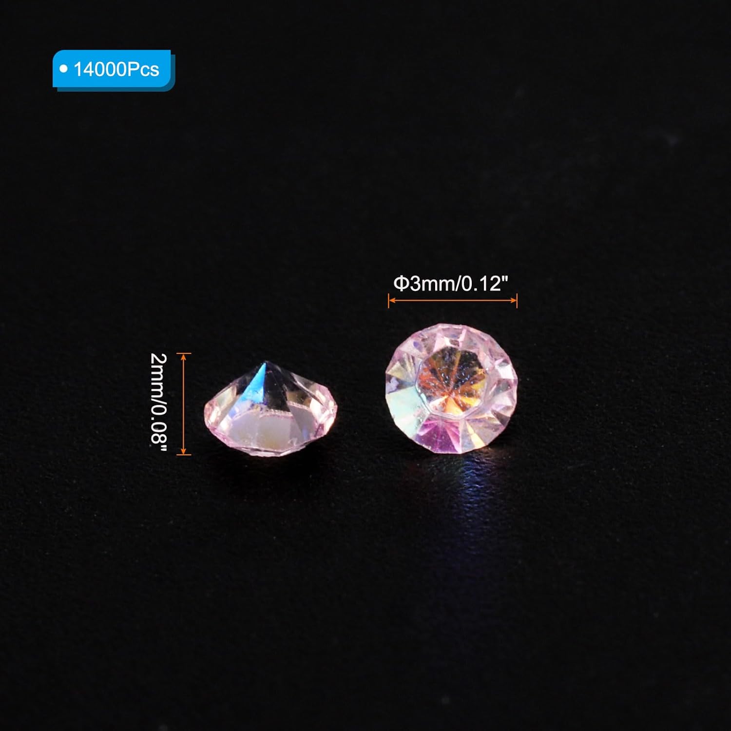 • Color: Light Pink AB; Material: Acrylic; Size: 3mm x 2mm/ 0.12 x 0.08 inch (Dia.x H); Packing List: 14000Pcs x Acrylic crystal diamonds