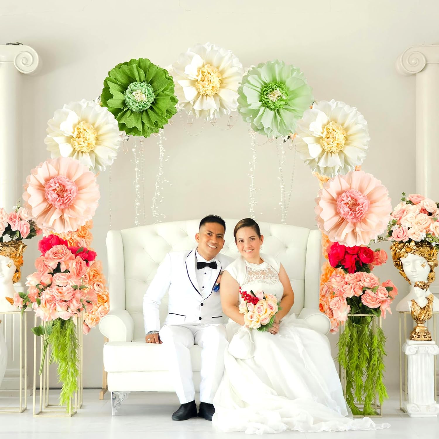 • Large Size, Quality Materials: Measuring 20 inches in diameter, with crepe paper petals which have flexibility and tear-resistance, and tissue paper flower buds and centers with an eye-catching design. These giant flowers for decoration make a bold statement. Use the floral decorations for parties as eye-catching centerpiece table decorations, adding grandeur to any celebration. Perfect as flowers for backdrop decoration at your party.