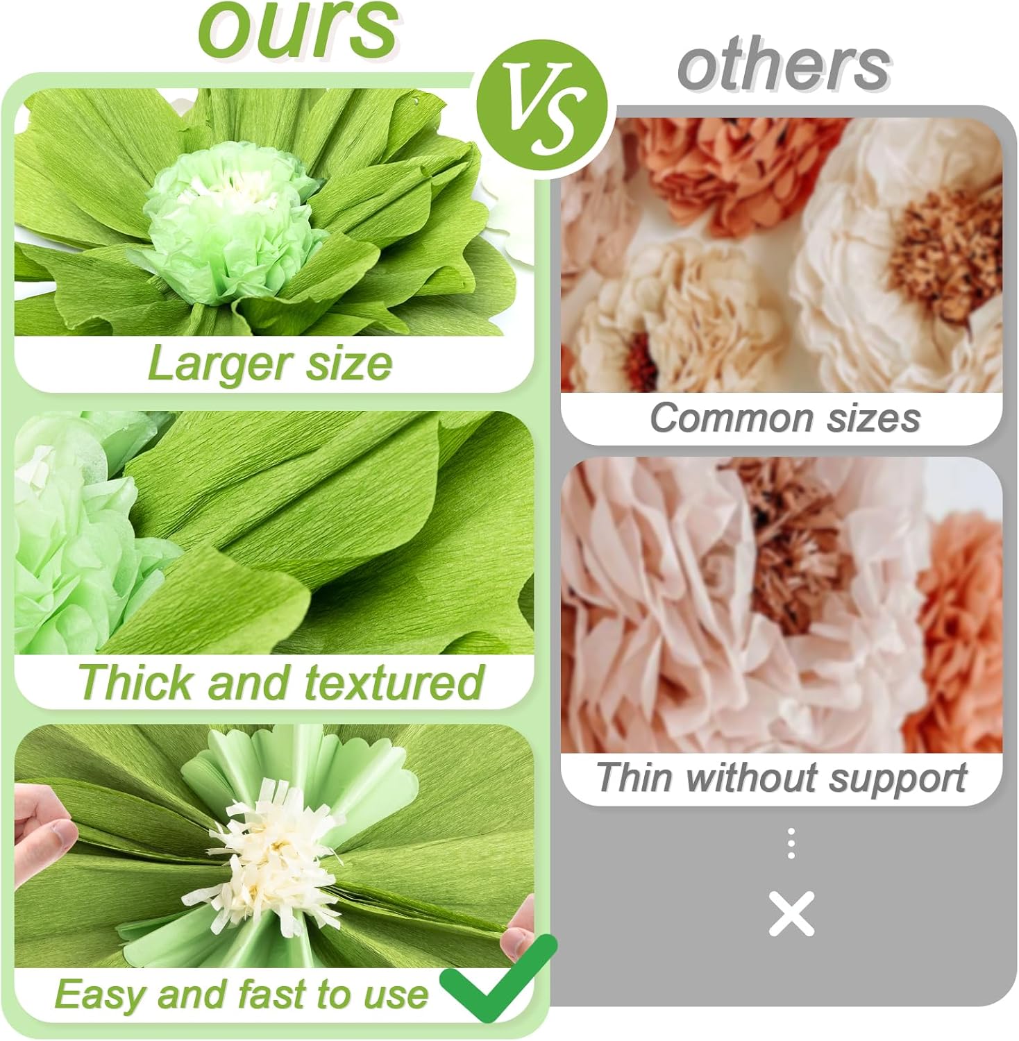 • Multiple Occasions: Transform any space with these versatile paper flowers for crafts. Ideal for creating a soft, inviting ambiance at baby showers, weddings, and spring classroom decorations. They’re also perfect for birthday parties, garden decorations, bridal shower decor, wedding, or tea party decorations. You can even try to use these as large paper flower decorations for walls to elevate your space.