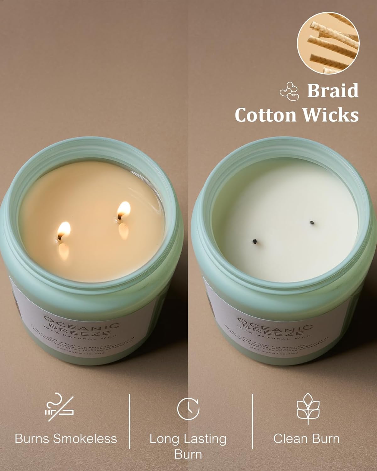 • 🌳 Clean Consistent & Even Burn - Using 2 American made lead-free cotton wicks for a even burn result. They're cotton flat braid wicks with paper throughout, providing increased rigidity and burn more consistently than 100% cotton wicks. Designed to reduce carbon buildup which leads to black soot.