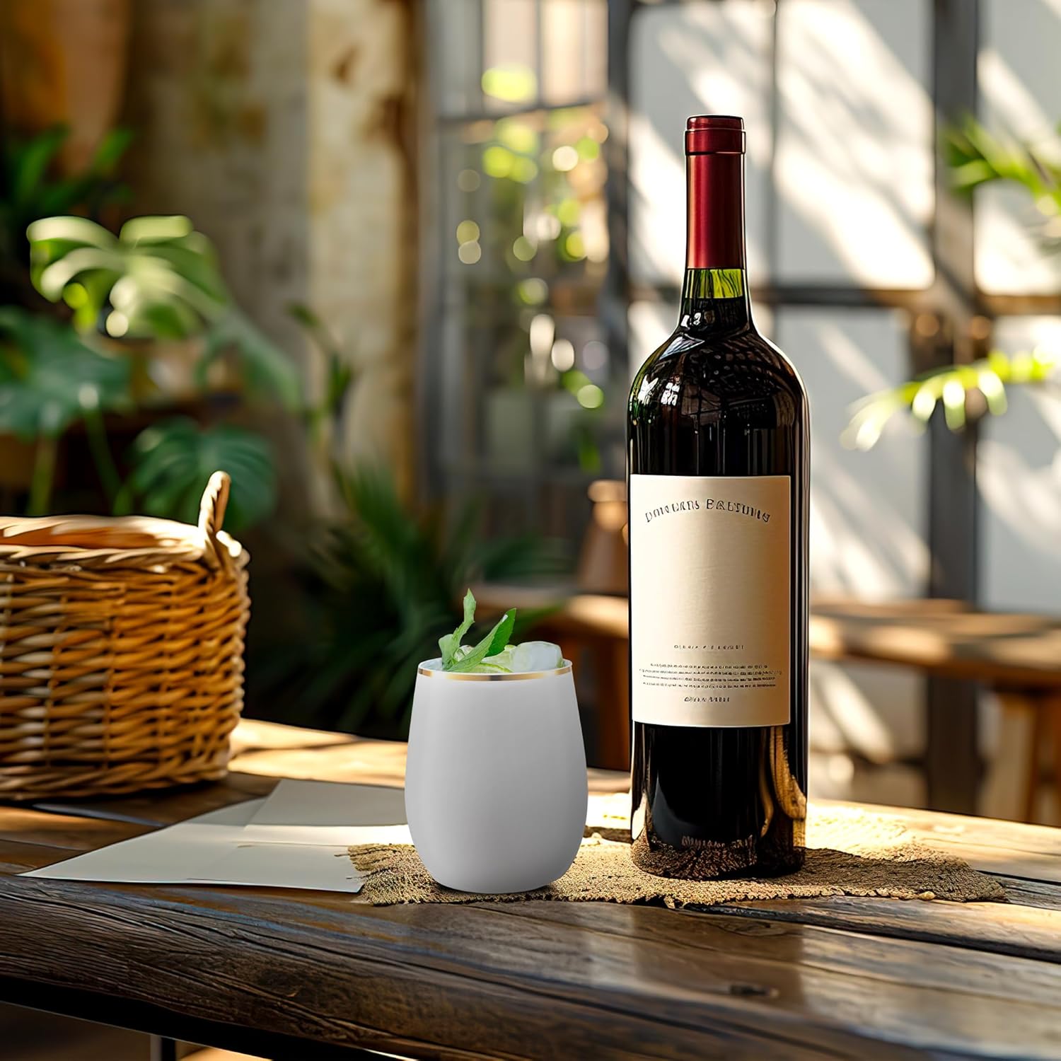 • ELEGANT & SOPHISTICATED DESIGN: Elevate your events effortlessly with these chic white and gold-rimmed stemless wine glasses, beautifully designed for all celebrations.