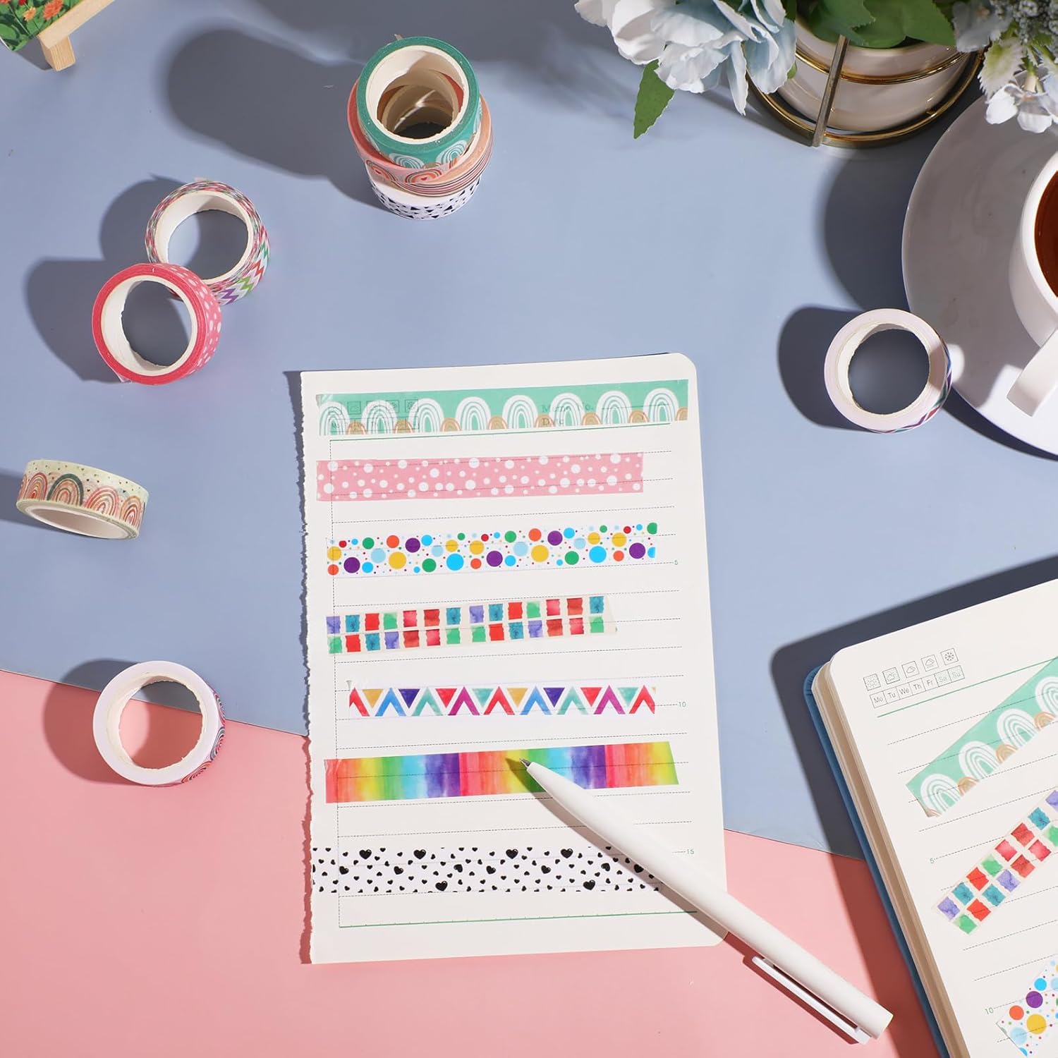 • Classic Festivals Elements: these washi tape stickers are characterized by various patterns, such as rainbow, sun, and many other elements, classic and vivid in patterns, sufficient to meet various festival decorations