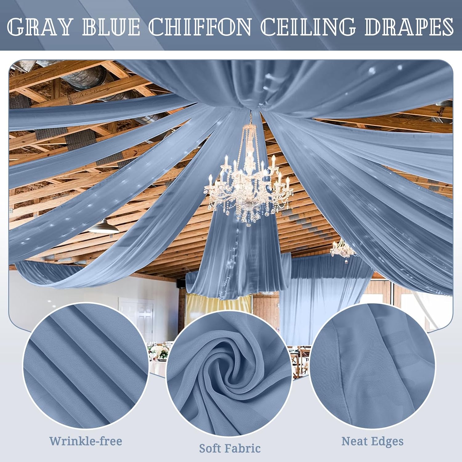 6 Panels Dusty Blue Ceiling Drapes for Wedding 5ftx30ft Chiffon Fabric Arch Draping Curtains Sheer Drapery for Party Ceremony Birthday Baby Shower Reception Stage Swag Ceiling Decorations