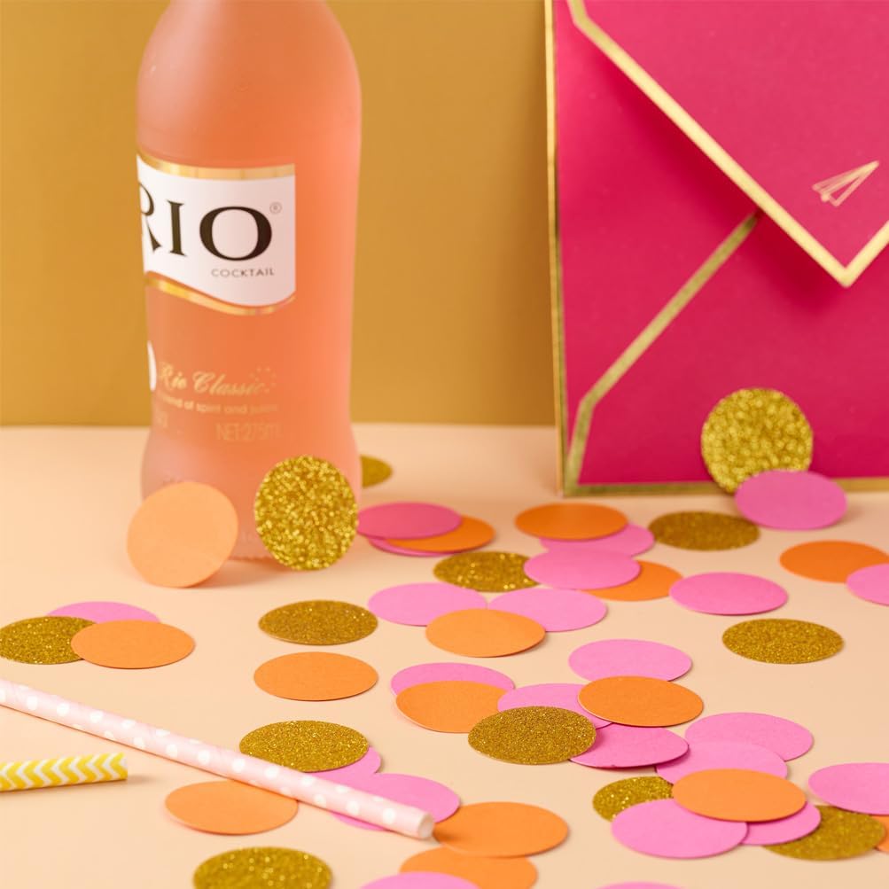 • Confetti Hot Pink Orange and Gold 200 counts dots confetti, each dots 1.2'' in diameter,high quality craft paper confetti